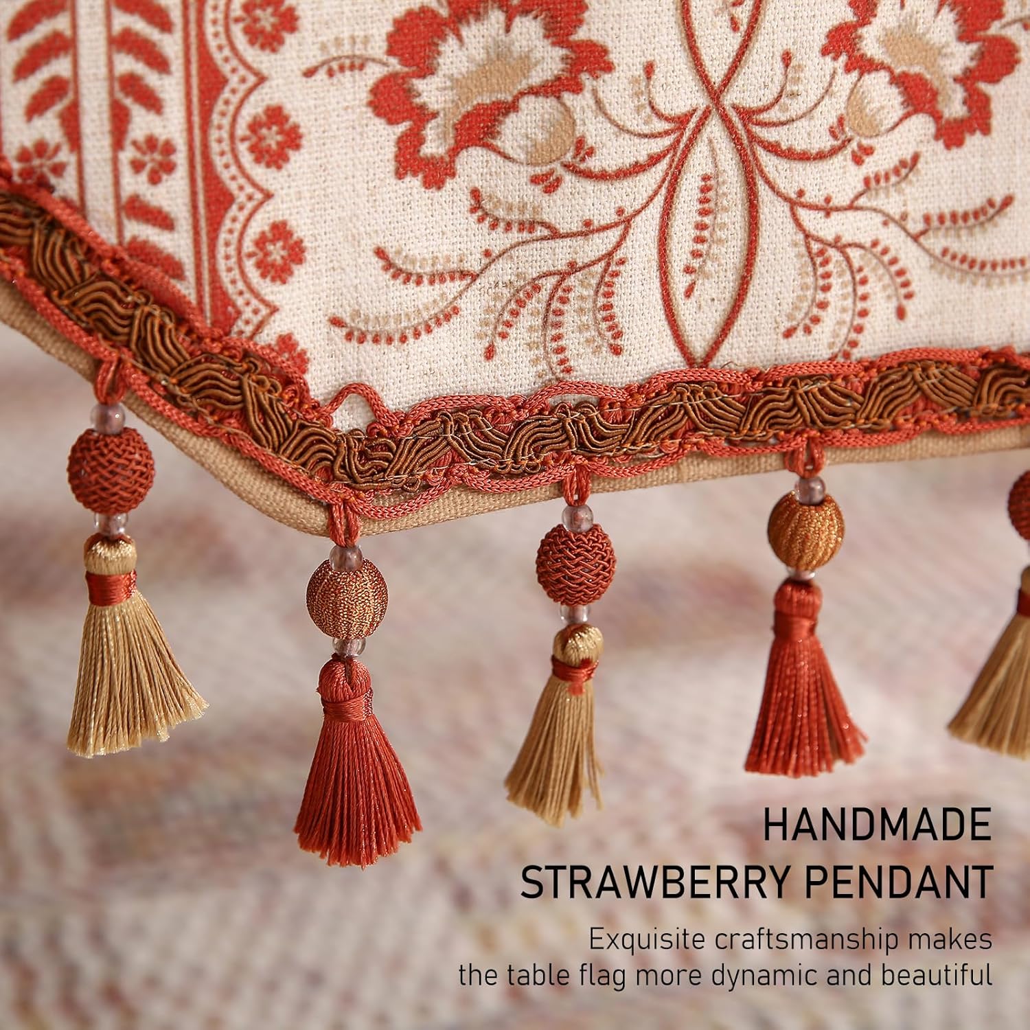 - Care Instructions:For table runners with tassels,hand washing or dry cleaning is recommended.Wash gently and air dry to maintain fabric quality.Table runners without tassels can be machine washed on a gentle cycle.After washing,they can be tumble dried on low heat; ironing is optional.Do not use bleach,as it may damage the fabric.