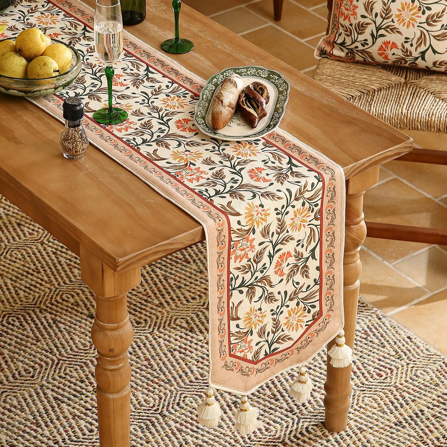 - Care Instructions:For table runners with tassels,hand washing or dry cleaning is recommended.Wash gently and air dry to maintain fabric quality.Table runners without tassels can be machine washed on a gentle cycle.After washing,they can be tumble dried on low heat; ironing is optional.Do not use bleach,as it may damage the fabric.