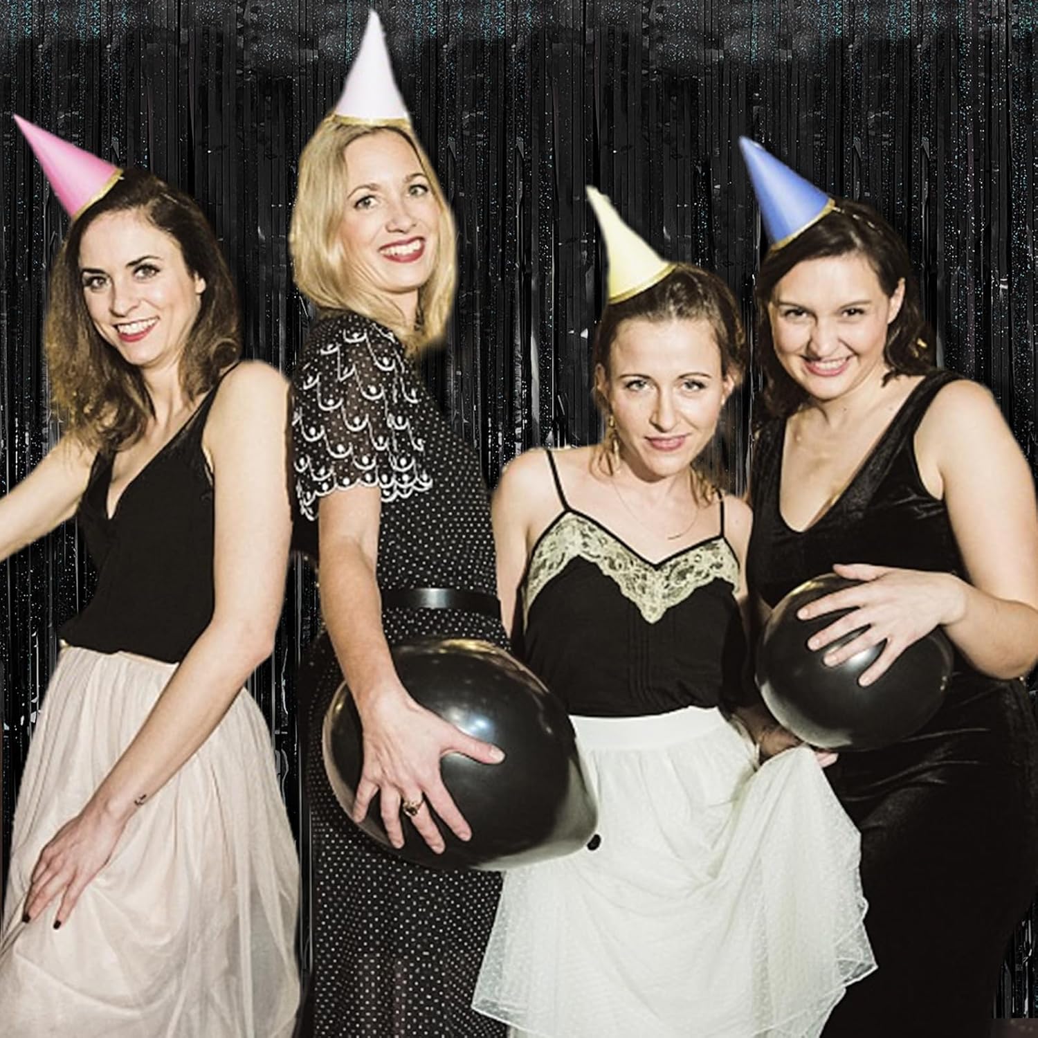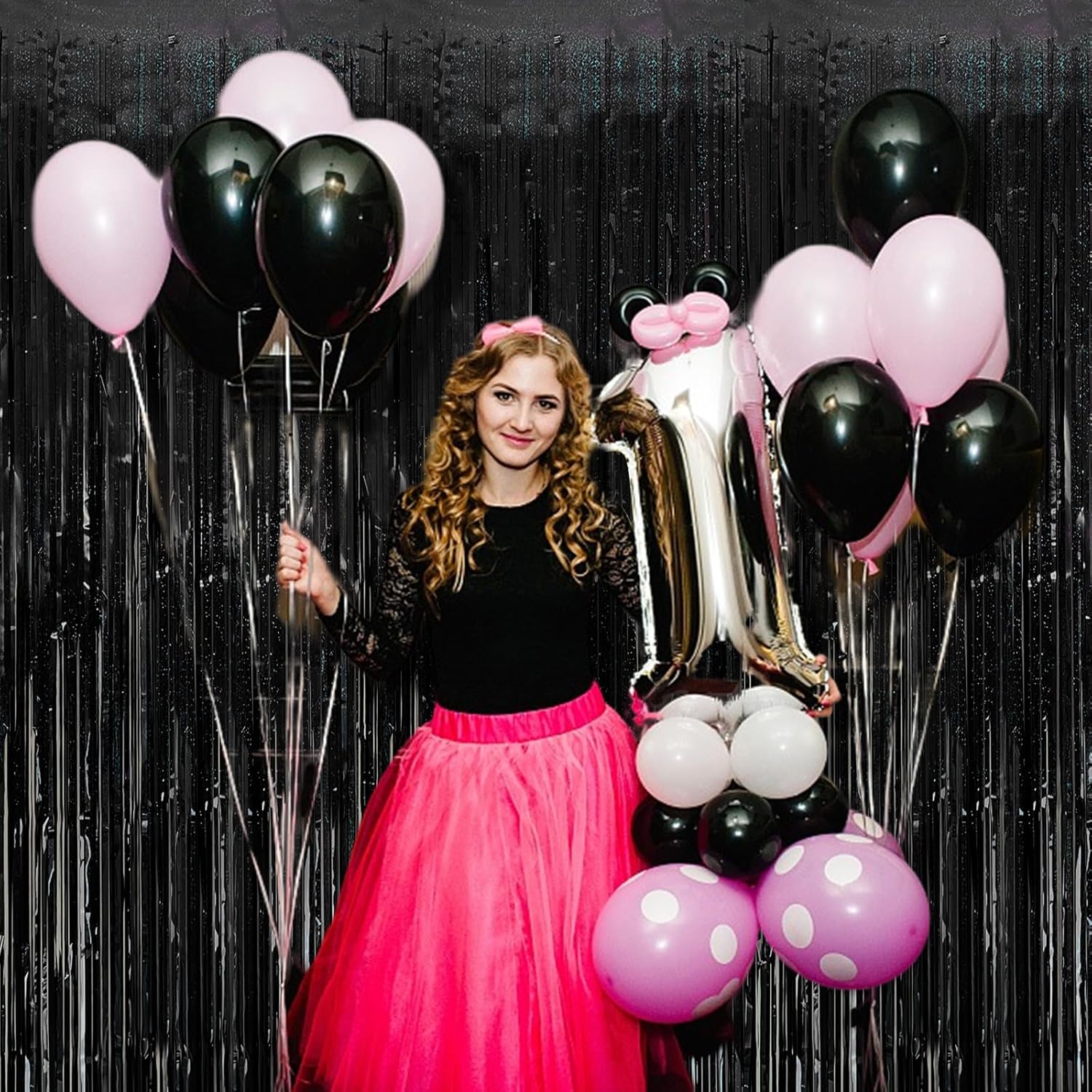 Tinsel Curtain Backdrop Black Birthday Party Decorations 2 Packs Glitter Foil Fringe Curtain Party Decor Streamers Photo Booth for Birthday Christmas Wedding Halloween Graduation Decorations