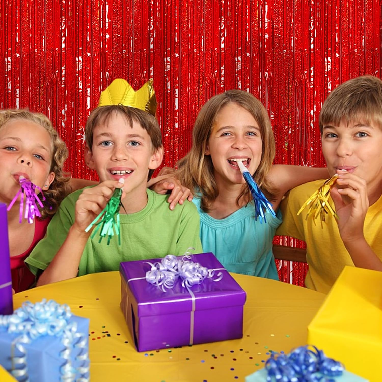 3 Pack Red Streamers Party Backdrop Christmas Decorations Foil Fringe Backdrop Curtains Carnival Casino Theme Birthday New Year Holiday Celebration Bachelorette Party Decorations Supplies