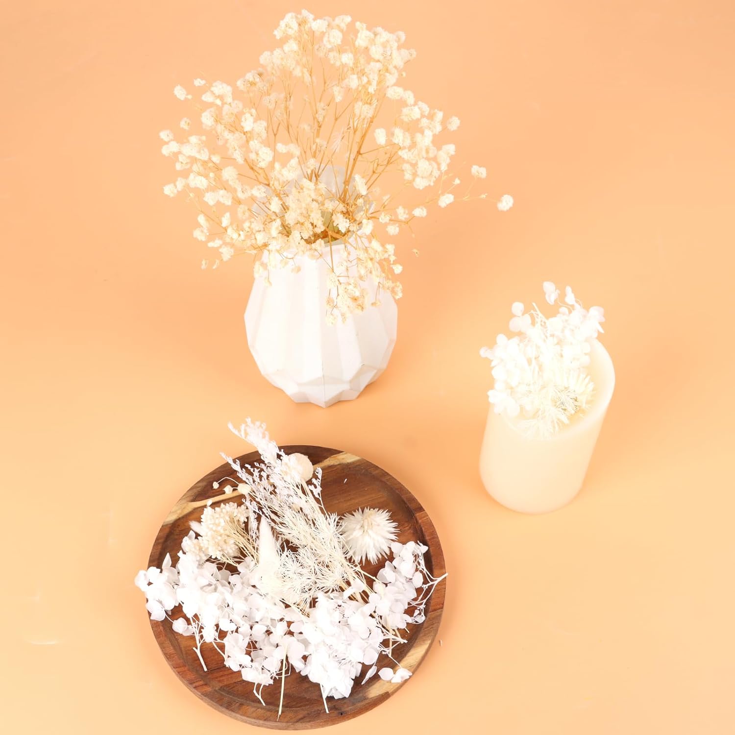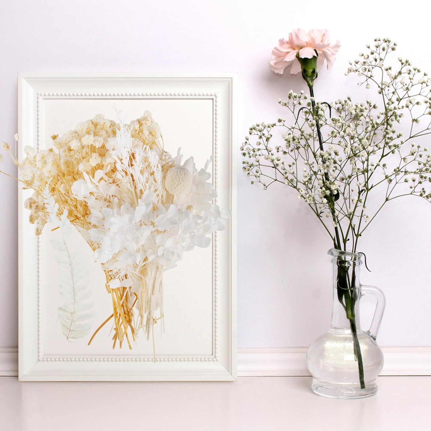 Dried Flowers,Dried Flowers Set for DIY Scrapbook Accessories Flower Arrangements Flower Decoration Wedding Decoration(White)