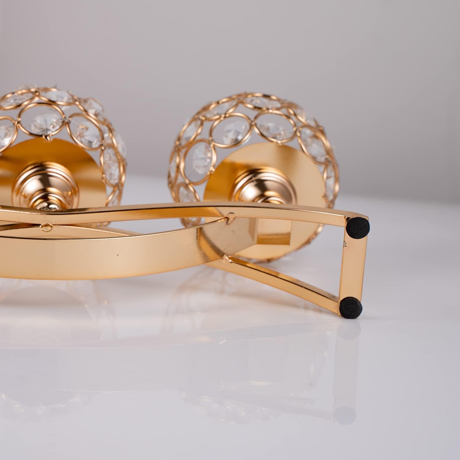 - β€Firm Base:Crystal Candle holder has a sturdy and heavy base, which absolutely not easy to shake and slide. The base has soft black flannelette on the bottom which protects your furniture from scratches.It is not a lightweight candle stand. you may feel its quality and texture when you take it.Wide contact surface at the base can ensure the holder solid and stable