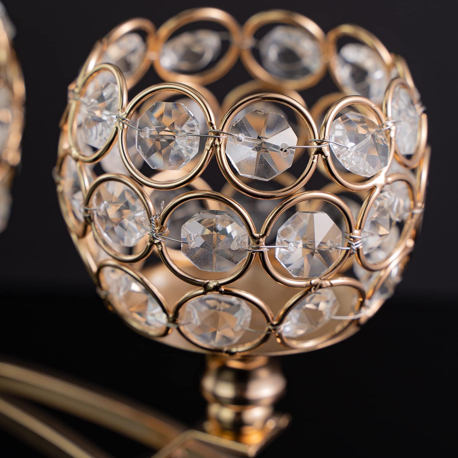- β€ HIGH QUALITY MATERIAL:gold candelabra centerpiece,Each shinning candle holder bowls are made of selected high quality octagonal K9 crystal beads,sparking and shinning makes it gorgeous and a sense of dignity with natural freshness.Very strong production process strengthen of anti-corrosion and rust prevention & durability.