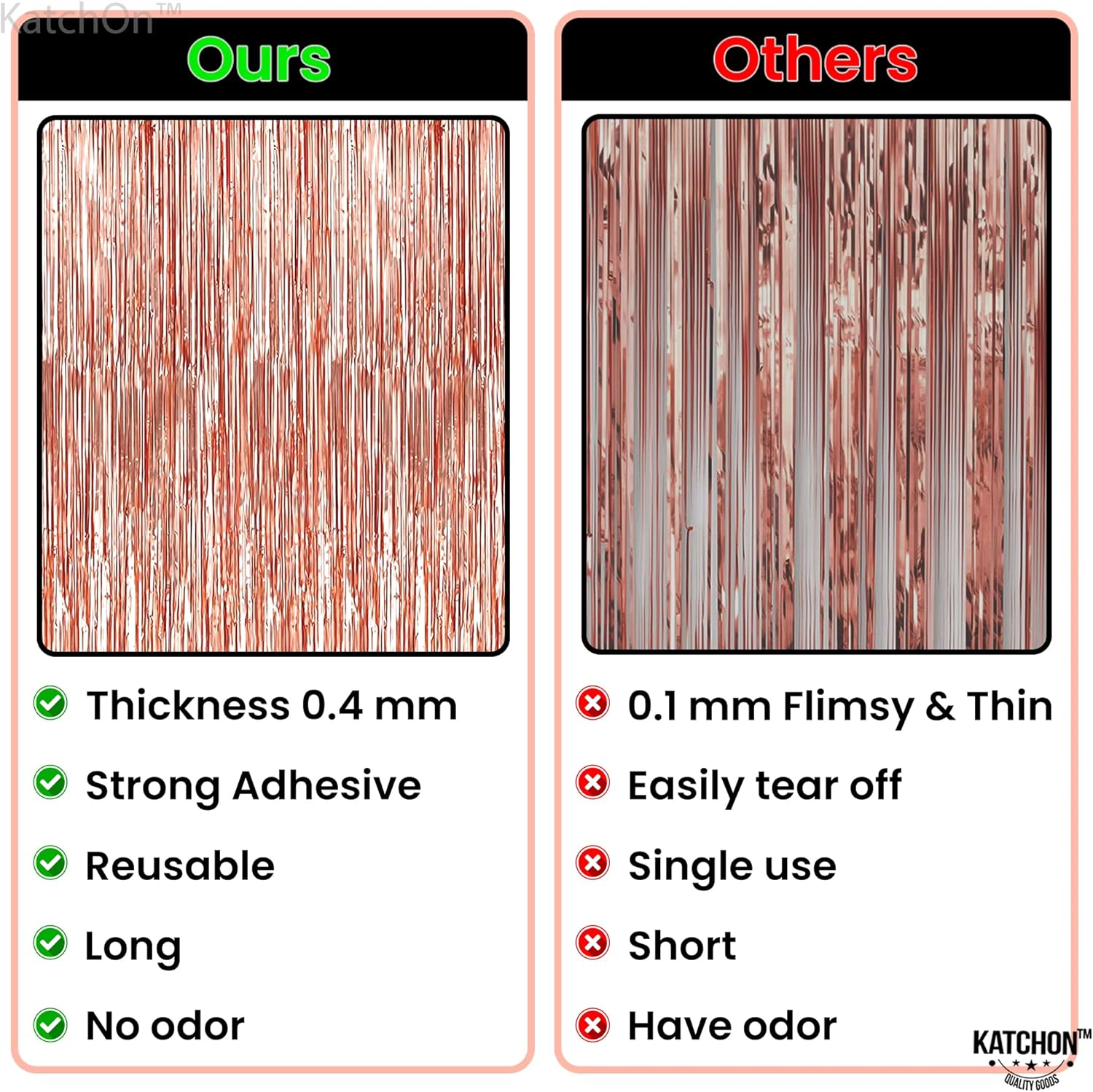 KatchOn, Rose Gold Fringe Curtain - Pack of 2 | Rosegold Backdrop for Anniversary, Wedding, Bachelorette Party Decorations| Fringe Backdrop for Rose Gold Birthday Decorations