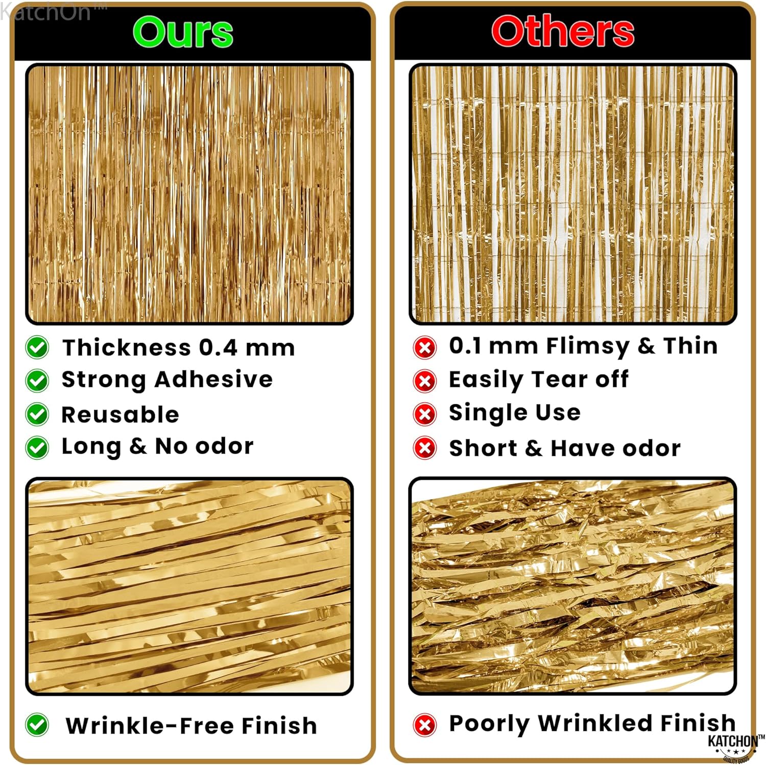 Katchon, Champagne Gold Backdrop Curtain - Pack of 2 | Gold Streamers for Birthday, Anniversary, Bridal Shower, Bachelorette Party Decor | Shimmer Curtains for Thanksgiving, Happy New Year Decorations
