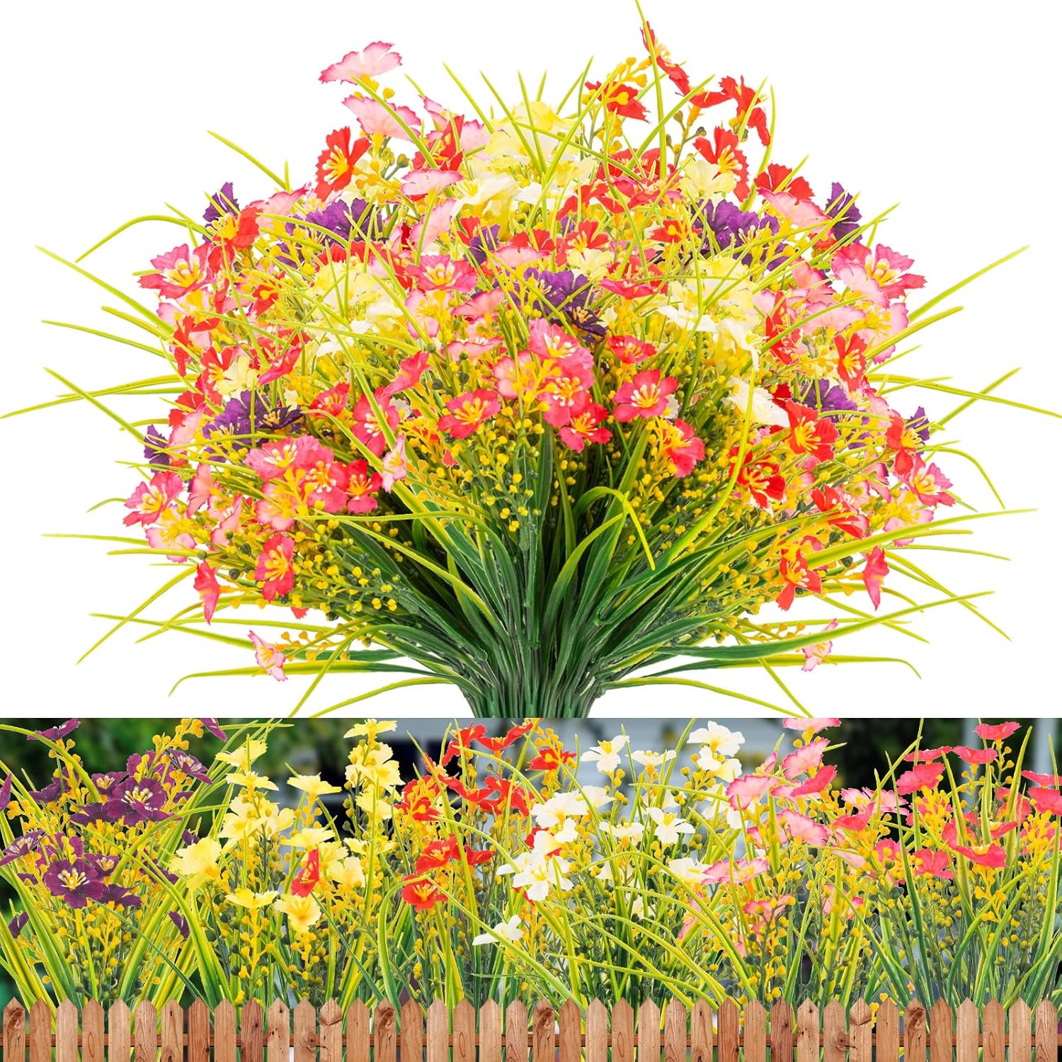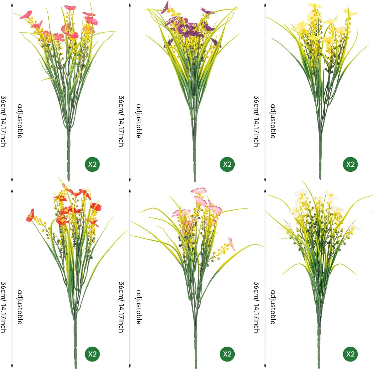 12 Bundles Artificial Outdoor Flowers Lifelike UV Resistant Fake Plastic Plants Indoor Outside Hanging Plants Garden Porch Window Box Decor (Mix 6 Colors)