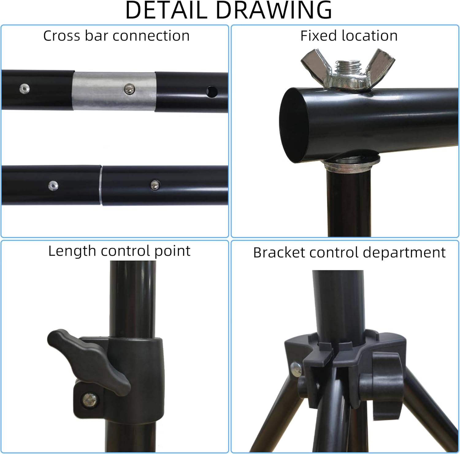 - 【Detachable Background Cross Bar】 The 4 sections of detachable crossbars can be assembled into suitable widths to adapt to backgrounds of different sizes. The maximum length of the 4-section crossbar can be 10 feet.