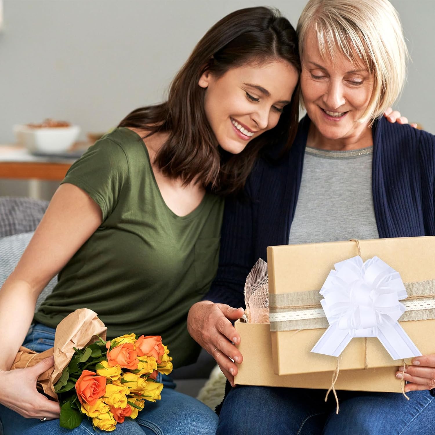 6Pcs 6inch Pull Bow Gift Wrapping,Pull Bow For Gift Basket, Gift Bag Box Wrapping Decor, Valentines Day, Birthday, Anniversary, Wedding, Flower Packaging (White)