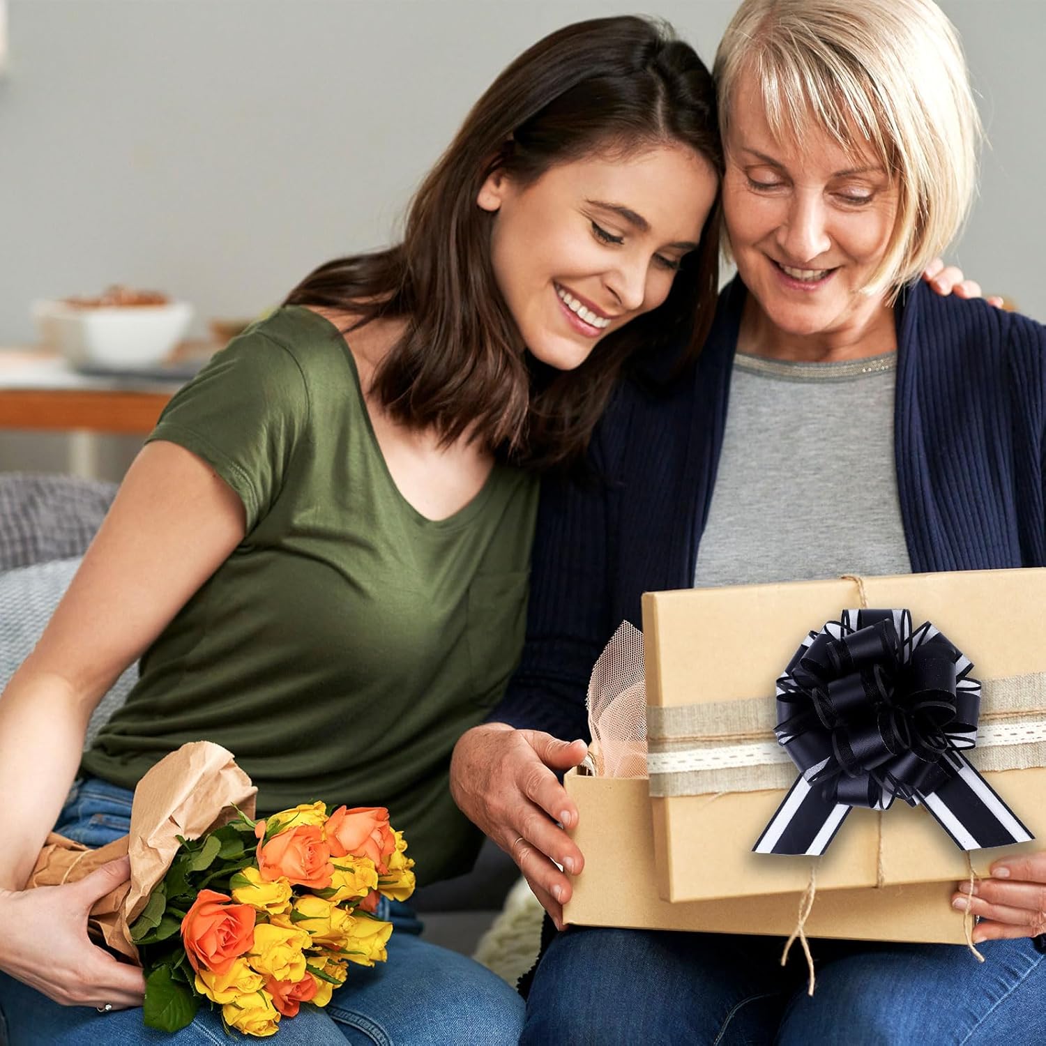 6Pcs 6inch Pull Bow Gift Wrapping,Pull Bow For Gift Basket, Gift Bag Box Wrapping Decor, Valentines Day, Birthday, Anniversary, Wedding, Flower Packaging (Black)