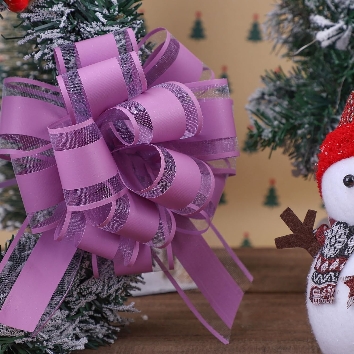 6Pcs 6inch Pull Bow Gift Wrapping,Pull Bow For Gift Basket, Gift Bag Box Wrapping Decor, Valentines Day, Birthday, Anniversary, Wedding, Flower Packaging (Purple)