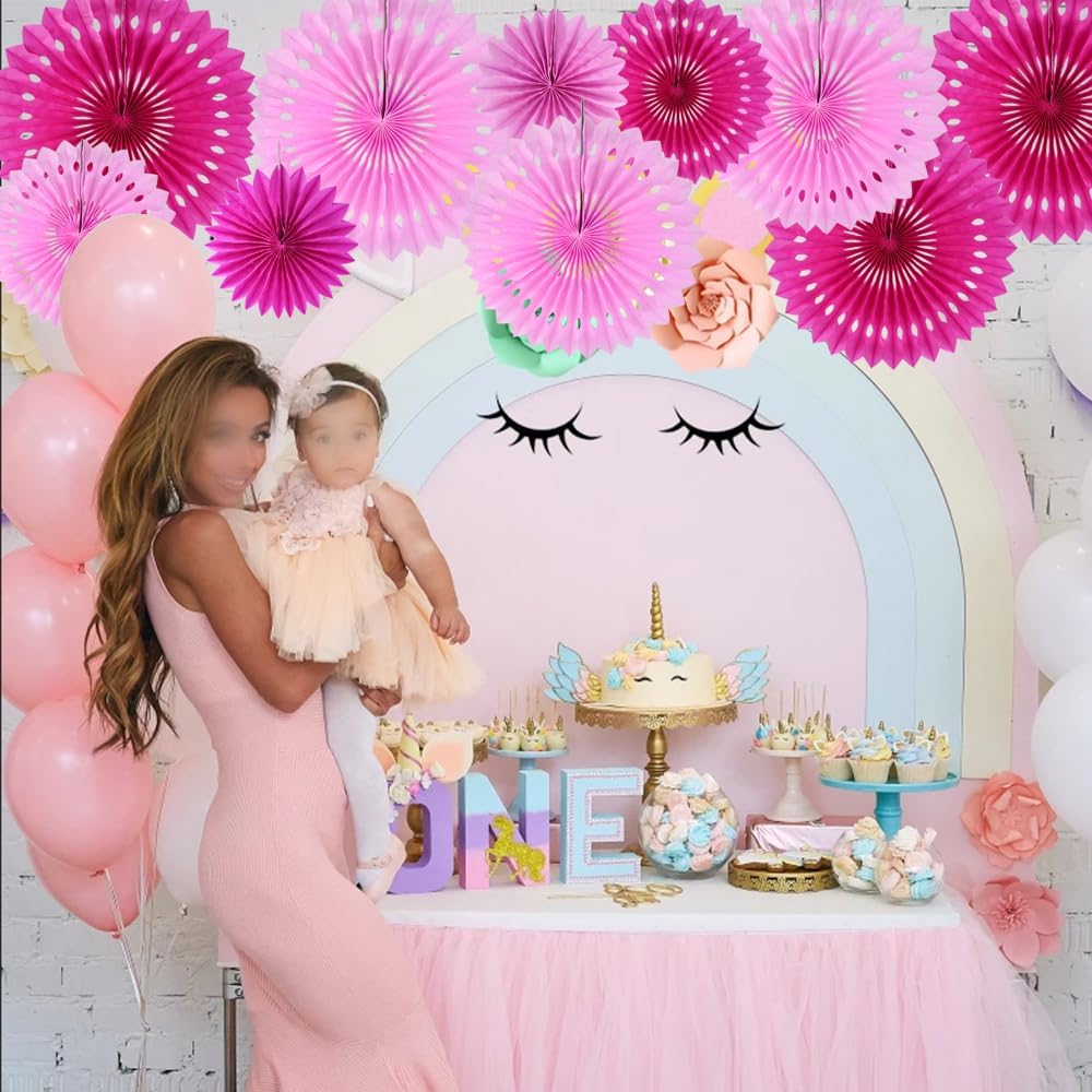 - 【Easy to assemble】: These hanging paper fans have a hanging string attached,just unfold the paper flower fan and fix it with the rope of the paper flower fan, then you can hang it to your favorite place and decorate your party perfectly in a few minutes.