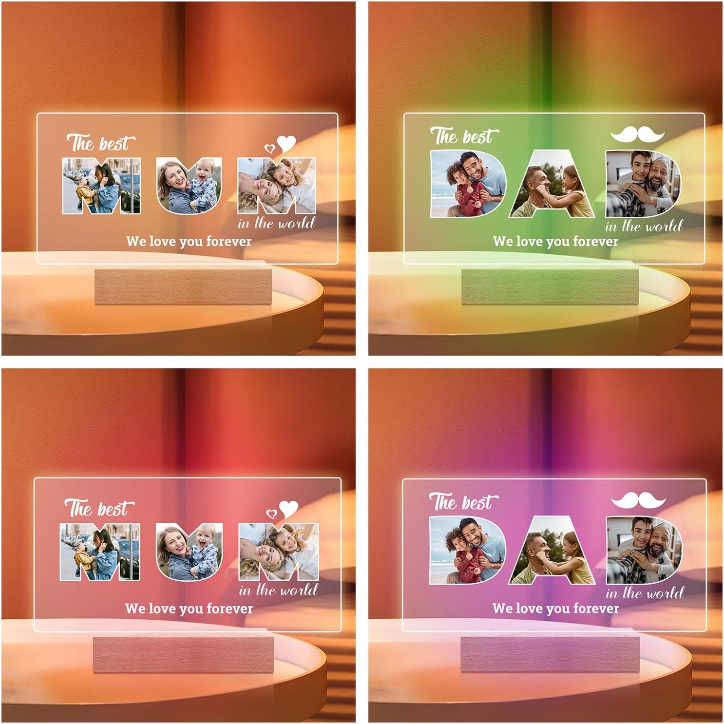 Personalized Birthday Gifts for Dad, Customized Picture Frames with Photo, Custom Photo Frame with Night Light, Personalized Picture Gifts for Dad