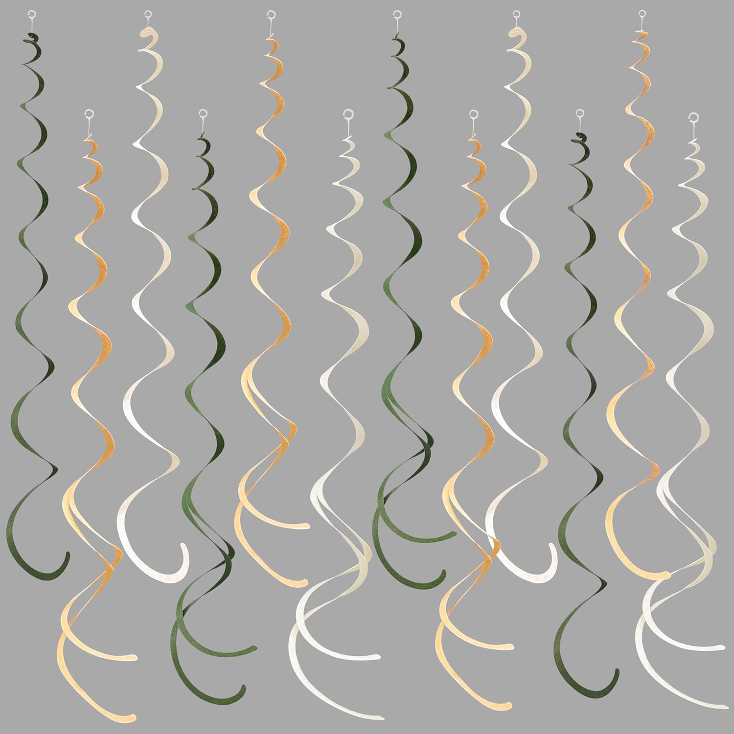 36Pcs Sage Green Hanging Swirl Decoration Olive Green Tan Brown Cream Neutral Felt Swirl Streamer Spiral Ceiling Garland for Greenery Safari Jungle Woodland Birthday Baby Shower Wedding Party Supplies