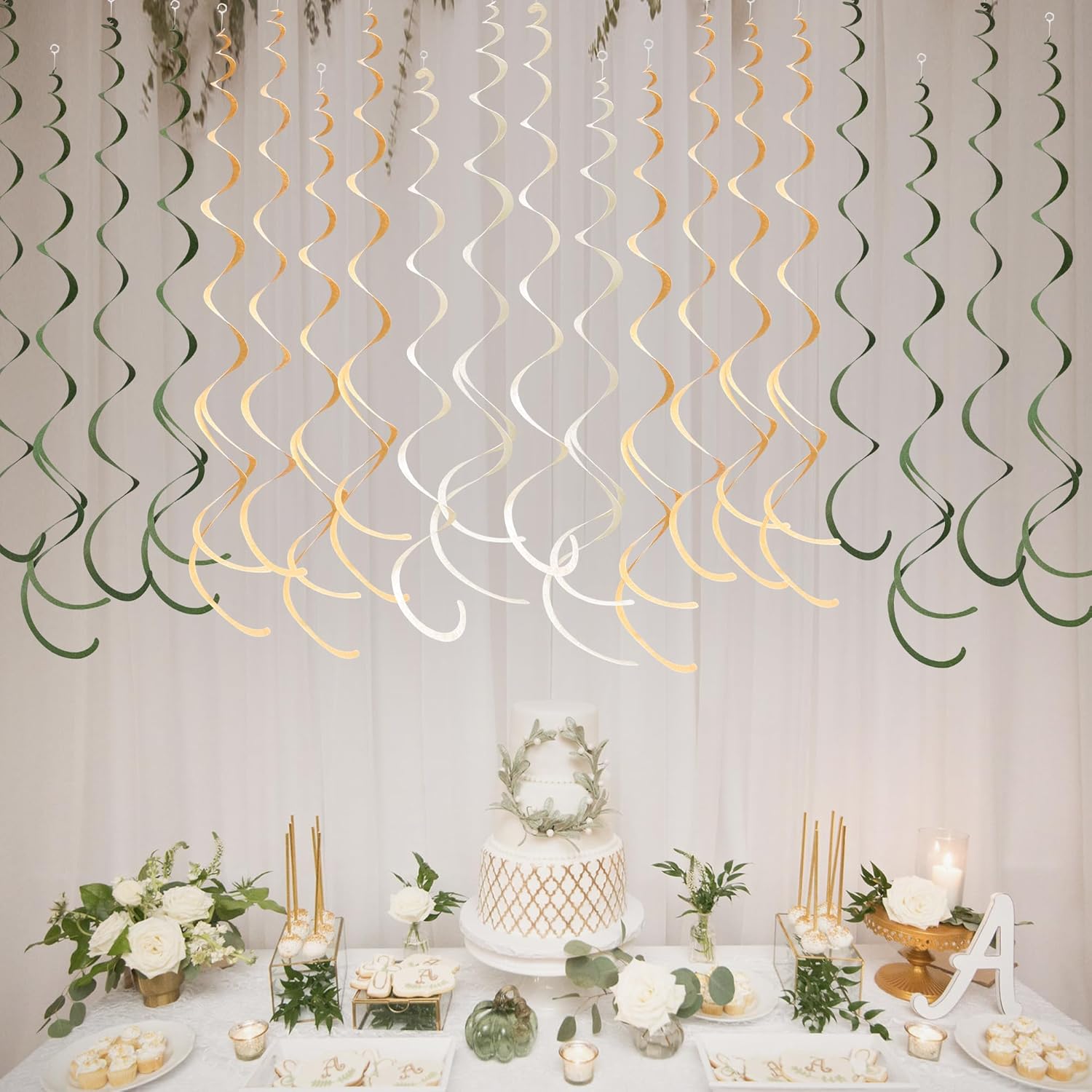 - Package Contains - 36 packs of sage green color swirl party streamer,Each swirl can extends to approximately about 2.62 feet long,Meeting daily general needs.Comes with 40 plastic hooks for hanging.
