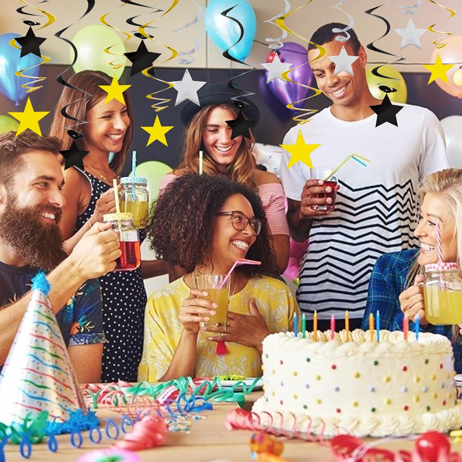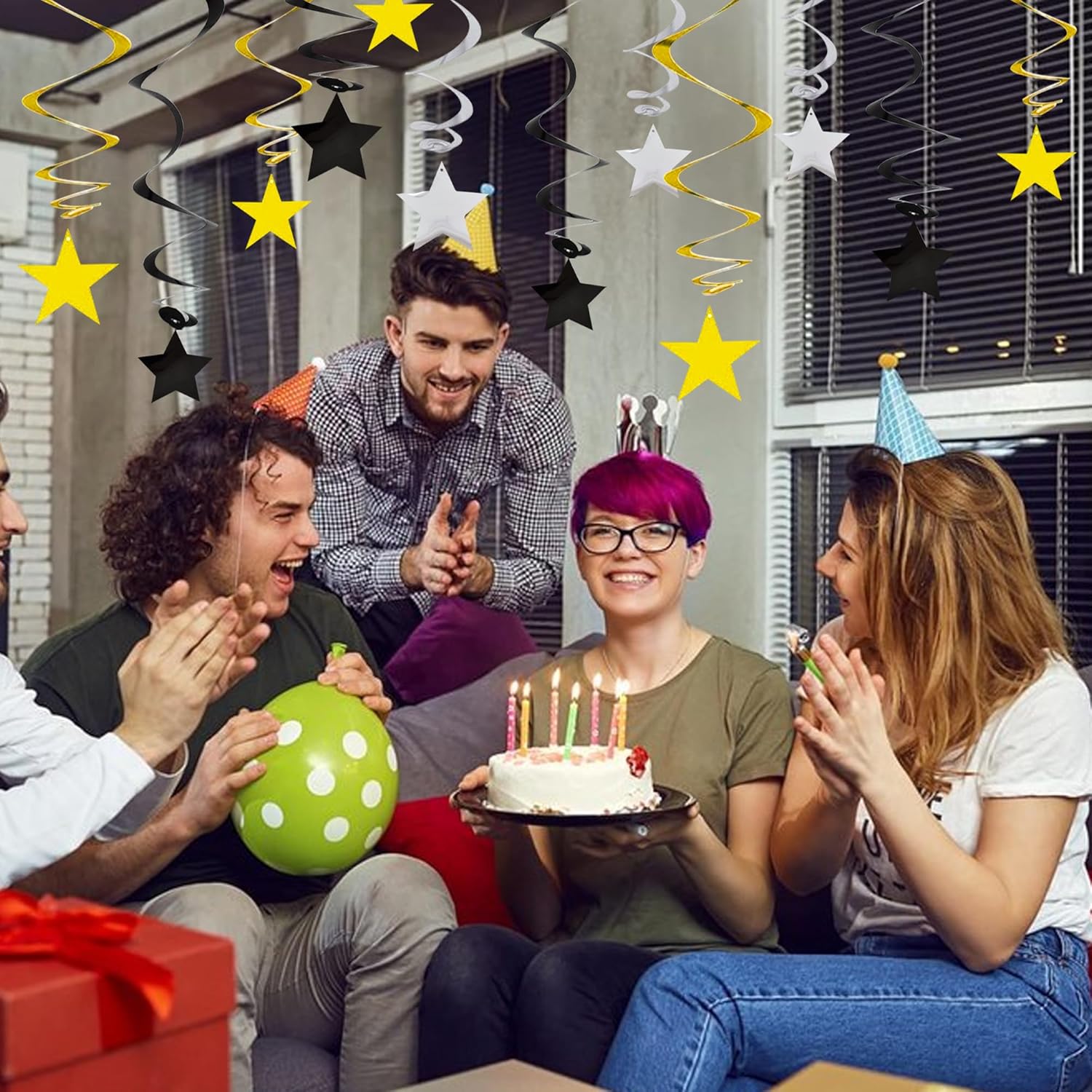 BEISHIDA Black Gold Silver Star Hanging Swirl Decorations,Graduation Birthday Hanging Party Supplies for Graduation Wedding Baby Shower Birthday Decorations,Pack of 15