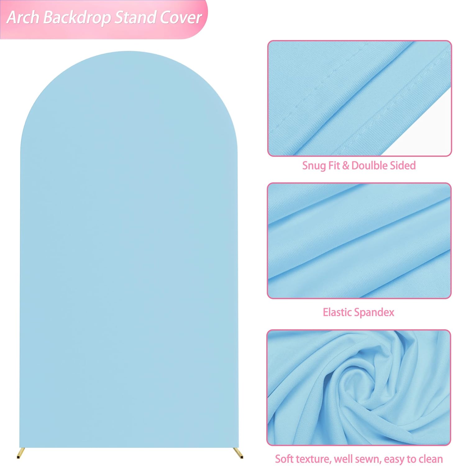 - 【Light Weight & Easy to Clean】The wedding arch cover is made of elastic spandex material, smooth touching and not easy to wrinkle, light weight and easy to clean and fold to storage. Decorate wedding arch backdrop stand with arch covers, flowers, greenery, garlands, tulle swags or vines to make your event stand out.