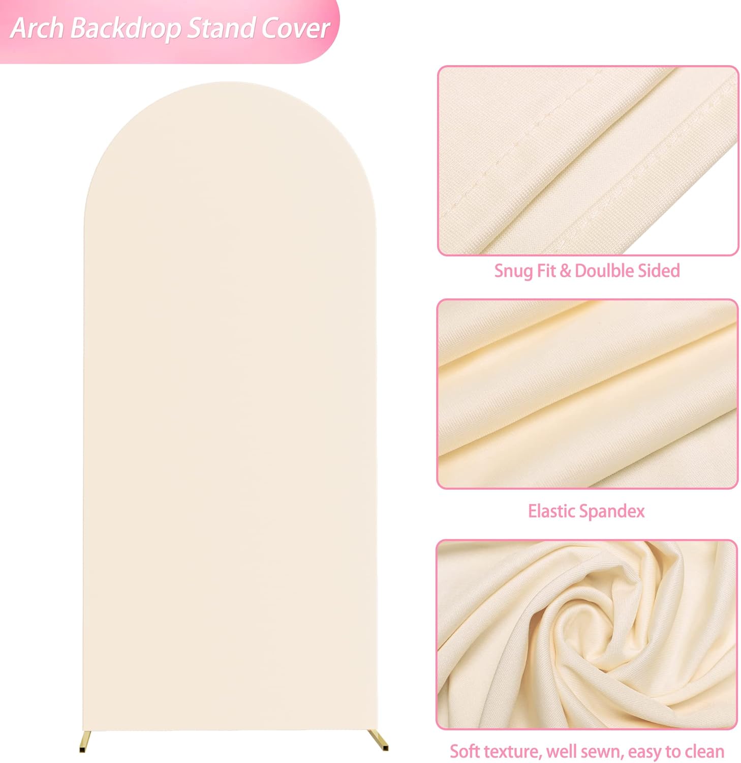 - 【Light Weight & Easy to Clean】The wedding arch cover is made of elastic spandex material, smooth touching and not easy to wrinkle, light weight and easy to clean and fold to storage. Decorate wedding arch backdrop stand with arch covers, flowers, greenery, garlands, tulle swags or vines to make your event stand out.
