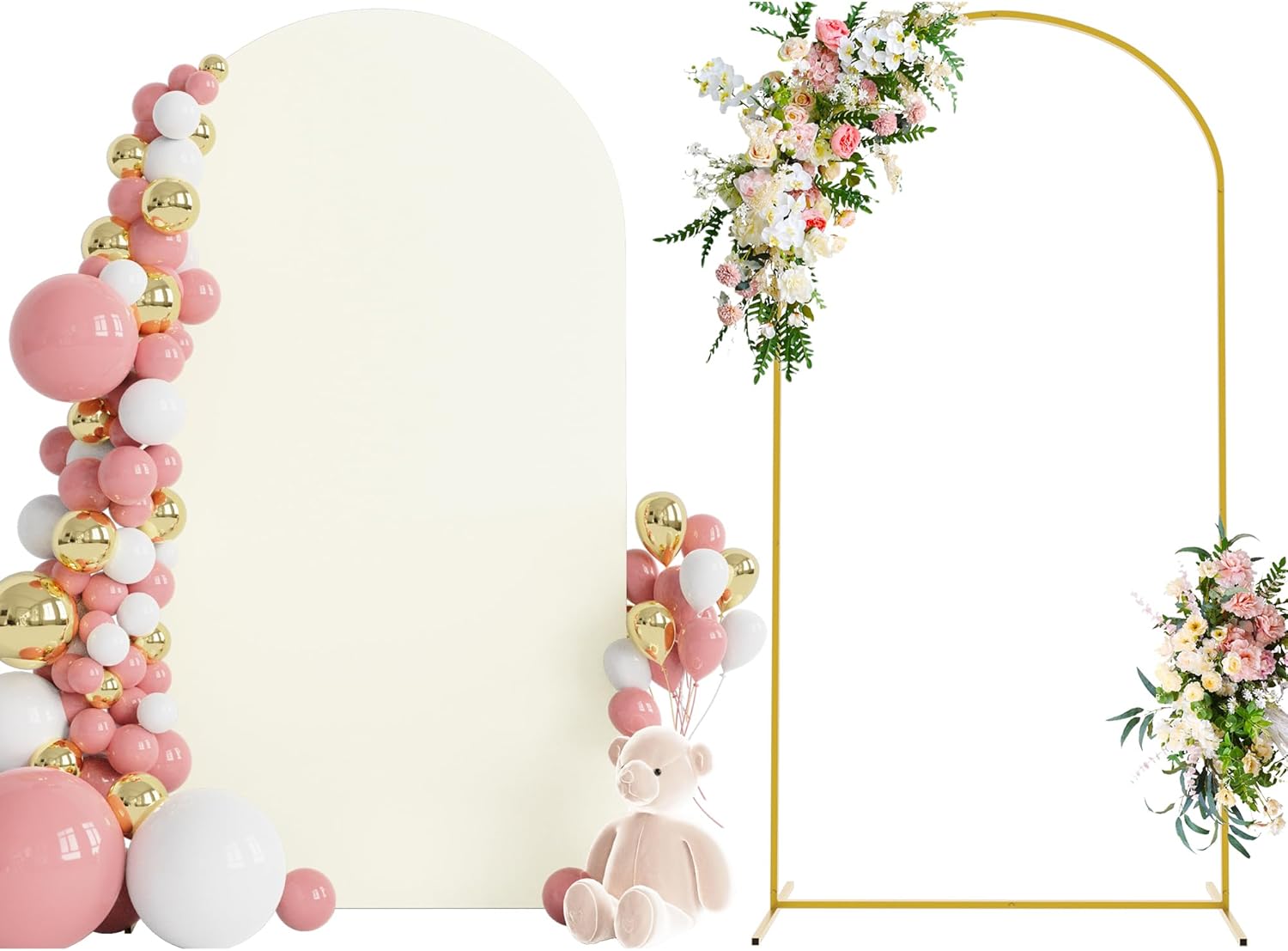 - 【Arch Backdrop Stand and Covers Package】Package contains 1pcs wedding arch stand and 1pcs arch cover. Size: 7.2x4ft(HxW). Material: metal arch backdrop stand and spandex arch cover. Color: Ivory arch cover and gold wedding arch stand. Decorate your party with our gold arch stand and arch covers to create an epic decor for your celebration.