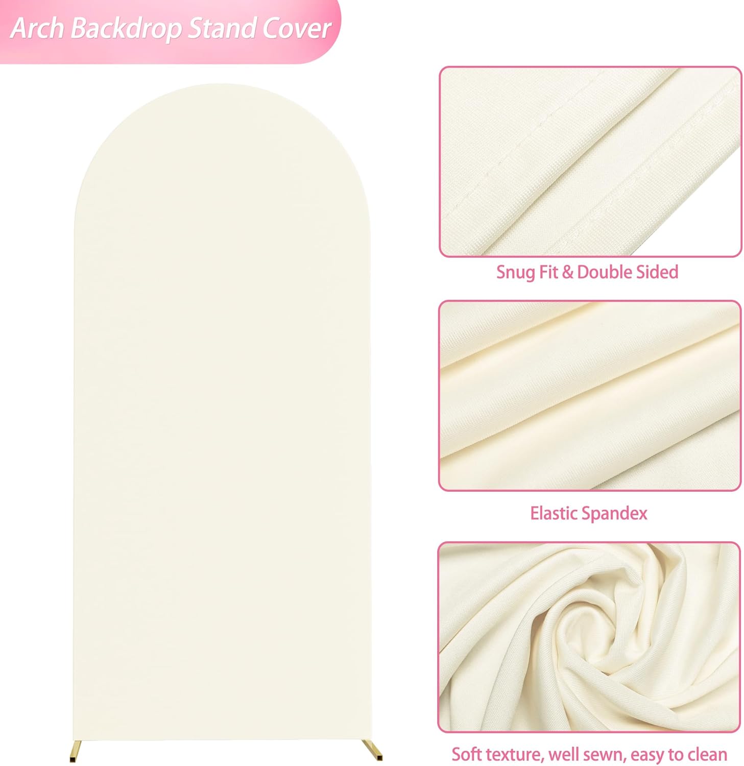 - 【Light Weight & Easy to Clean】The wedding arch cover is made of elastic spandex material, smooth touching and not easy to wrinkle, light weight and easy to clean and fold to storage. Decorate wedding arch backdrop stand with arch covers, flowers, greenery, garlands, tulle swags or vines to make your event stand out.