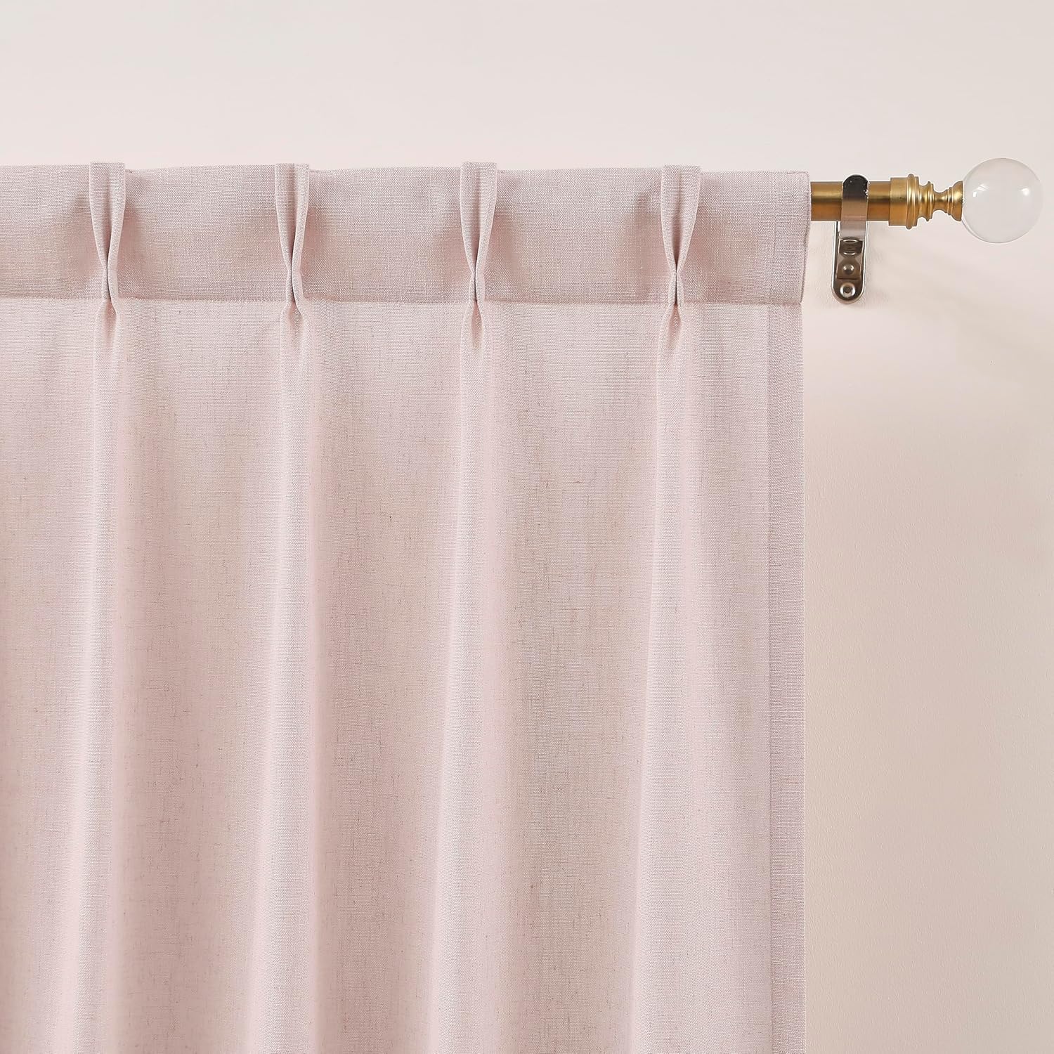 Vision Home Soft Pink Pinch Pleated Semi Sheer Curtains Textured Linen Blended Light Filtering Window Curtains 90 inch for Living Room Bedroom Pinch Pleat Drapes with Hooks 2 Panels 40" Wx90 L