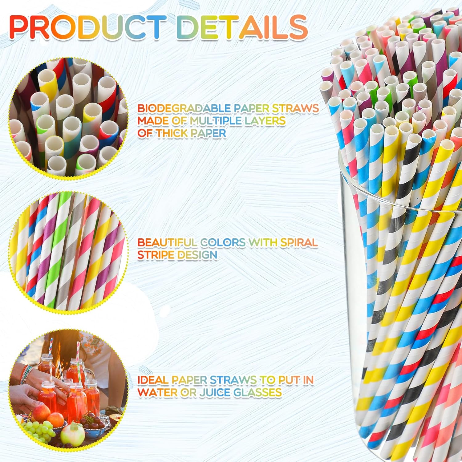- Versatile and Multipurpose: whether you're making a smoothie, cocktail, or simply sipping on your favorite beverage, our striped paper drinking straws for any occasion; Their trendy striped design adds a splash of color to any event, making them a must-have for birthdays, weddings, picnics, or any casual and extraordinary celebration