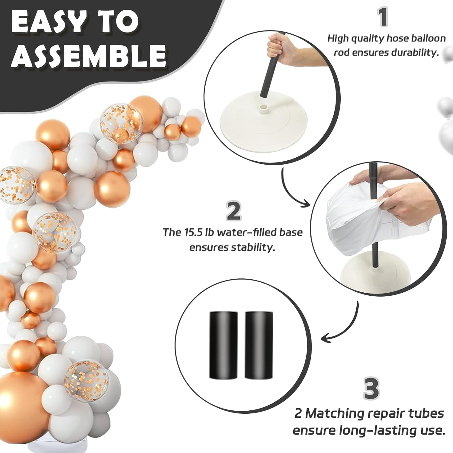 - 🌟Premium Quality: Engineered with precision, our perfect arch balloon stand excels in both stability and durability. The robust water bag base effortlessly supports balloon and decoration weight, ensuring steadfast stability and preserving your decor's perfection throughout your event.