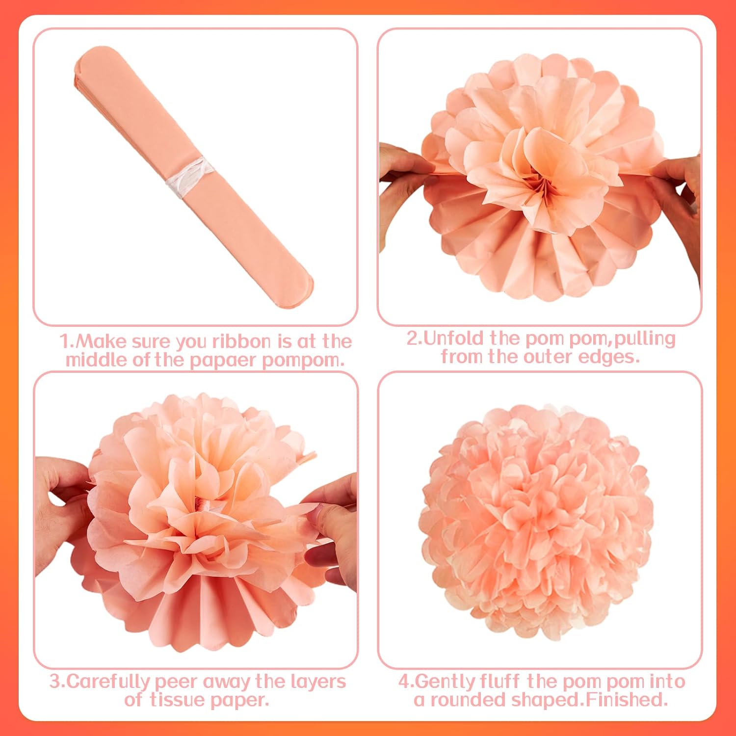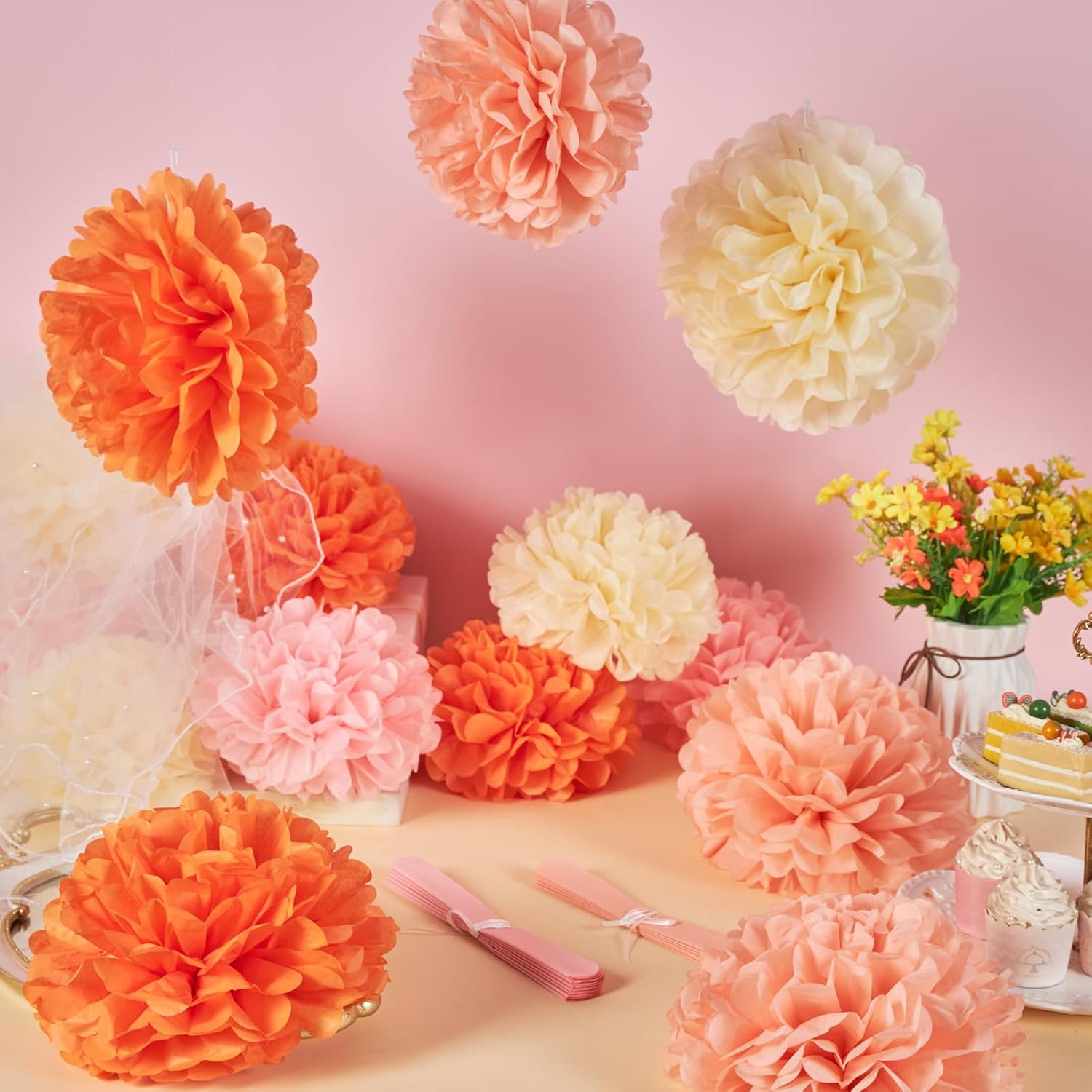 - Memorable Moments: Create lasting memories with loved ones as you celebrate life's special moments surrounded by the beauty of these pink and orange tissue pom poms. Their vibrant colors and elegant design will make your event truly unforgettable.