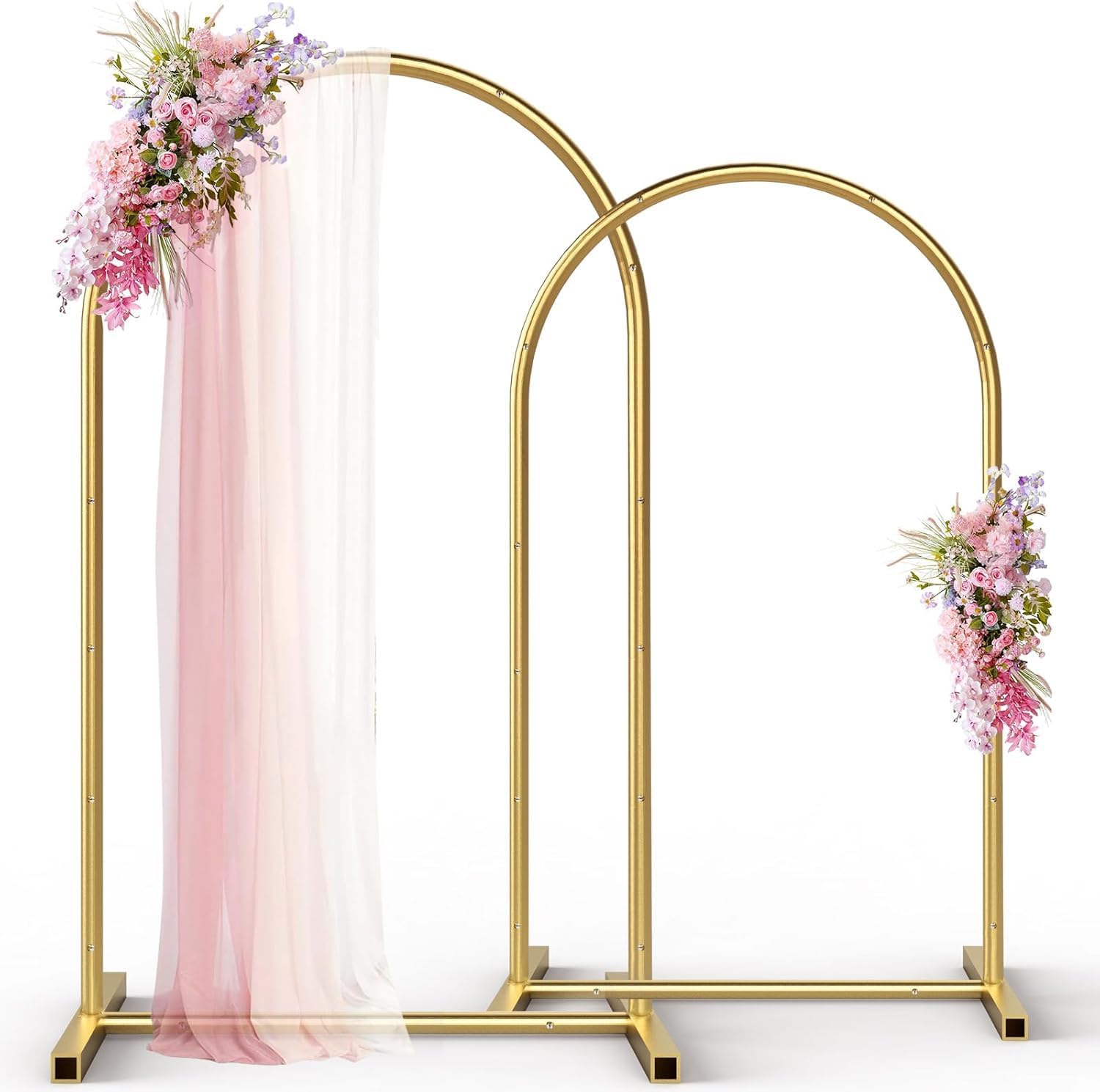 - DURABLE & VERSATILE -- The arch backdrop stand set is constructed with high quality metal materials. The arch features a cross bar at the base, which provides a more stable support frame for the backdrop stand. This set can be decorated multiple times for a variety of occasions, such as birthday parties, graduations, receptions, engagement anniversaries, gardens, commercial events, New Year's, Halloween and Christmas.