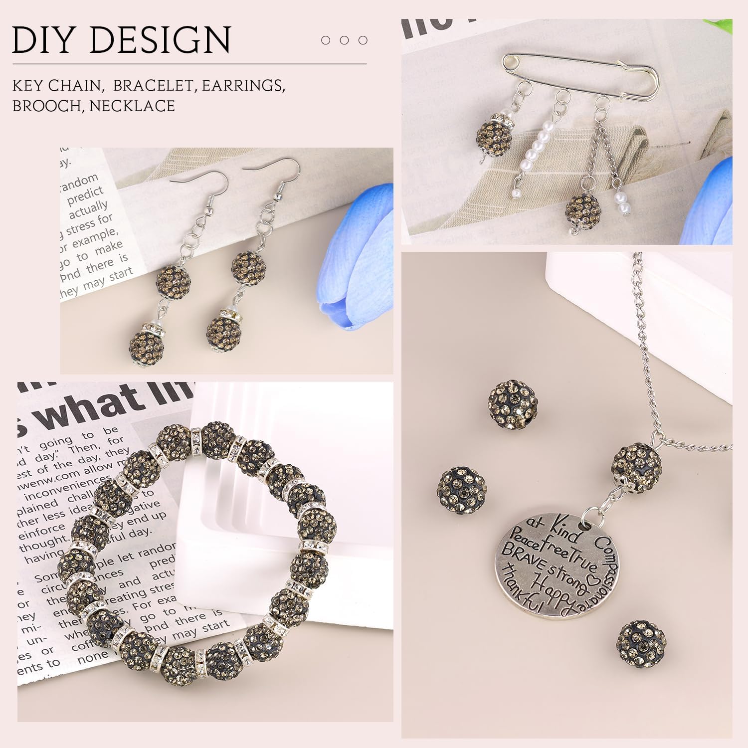 150pcs 10mm Rhinestone Beads for Jewelry Making, Gray Shiny Round Shamballa Disco Ball Beads Bulk, Sparkle Crystal Clay Christmas for Bracelet Baseball Necklace Earring Crafting and DIY