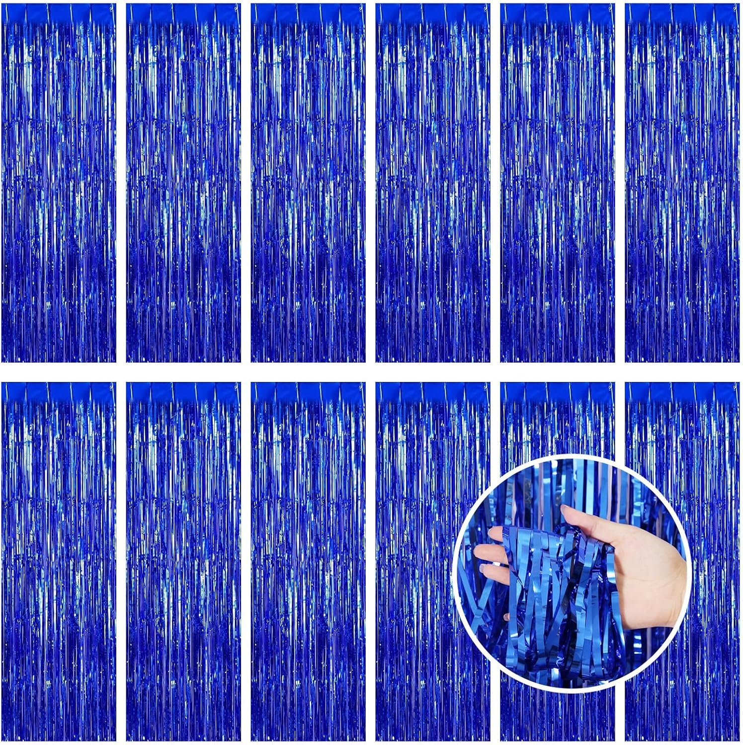- 【Generous Quantity】Our party decoration supplies include 12 pieces of blue party streamers, the size of each blue foil curtain is 3.3ft x 8.2ft(1m x 2.5m). The extended length and rich quantity can help you create a sparkling party atmosphere and meet your various party decoration needs.