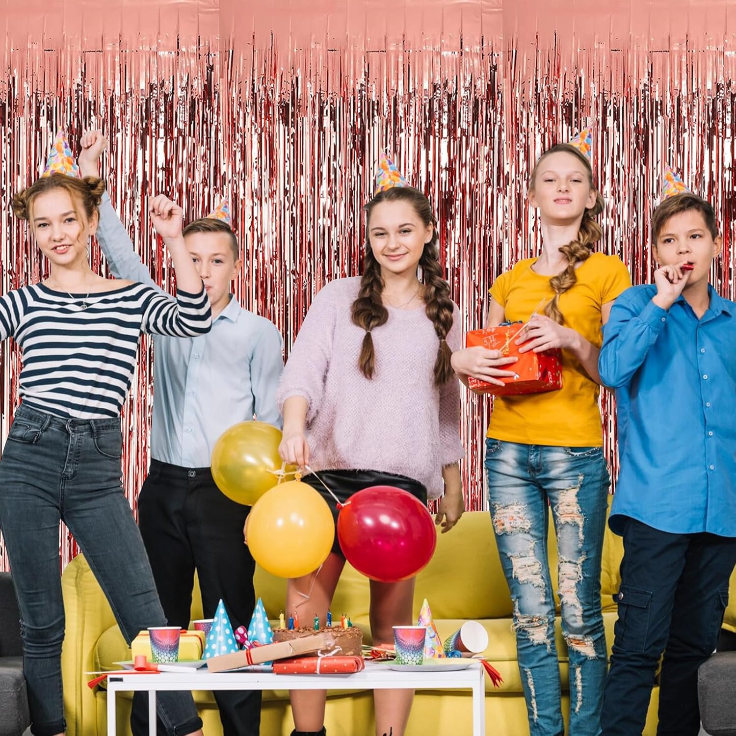- 【Ideal Party Decoration】Show off your creativity and make your party stand out by using these rose gold foil fringe curtains to decorate your party. You can hang them on a door or wall as a surprise entrance to the party, or pair them with LED lights, balloons, and banners to create a shiny party backdrop for different themes and occasions.
