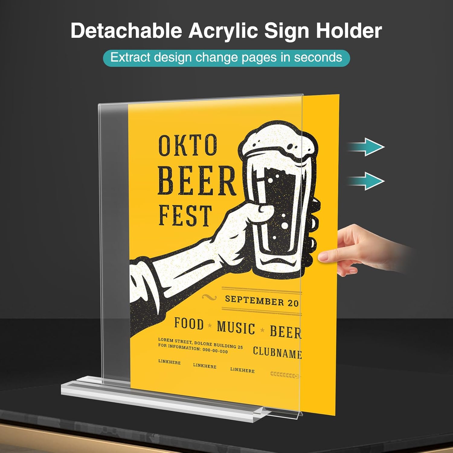 - Multifunctional Acrylic Stands for Display - 6-PACK 8.5x11 acrylic sign holder can meet your various daily needs. Not only can it be used to display menus and information promotion, but it can also be used as an acrylic picture frame to place your favorite photos.