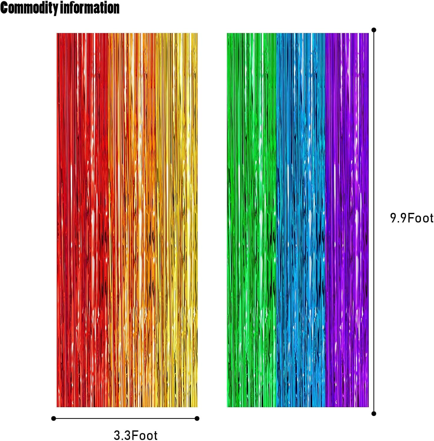- π RAINBOW PARTY DECORATIONS: 1 pack of red orange yellow, and 1 pack of green blue purple foil fringe curtains, Extra large size (width x drop) 3.3 x 8.2 ft, perfect for rainbow birthday party decorations.