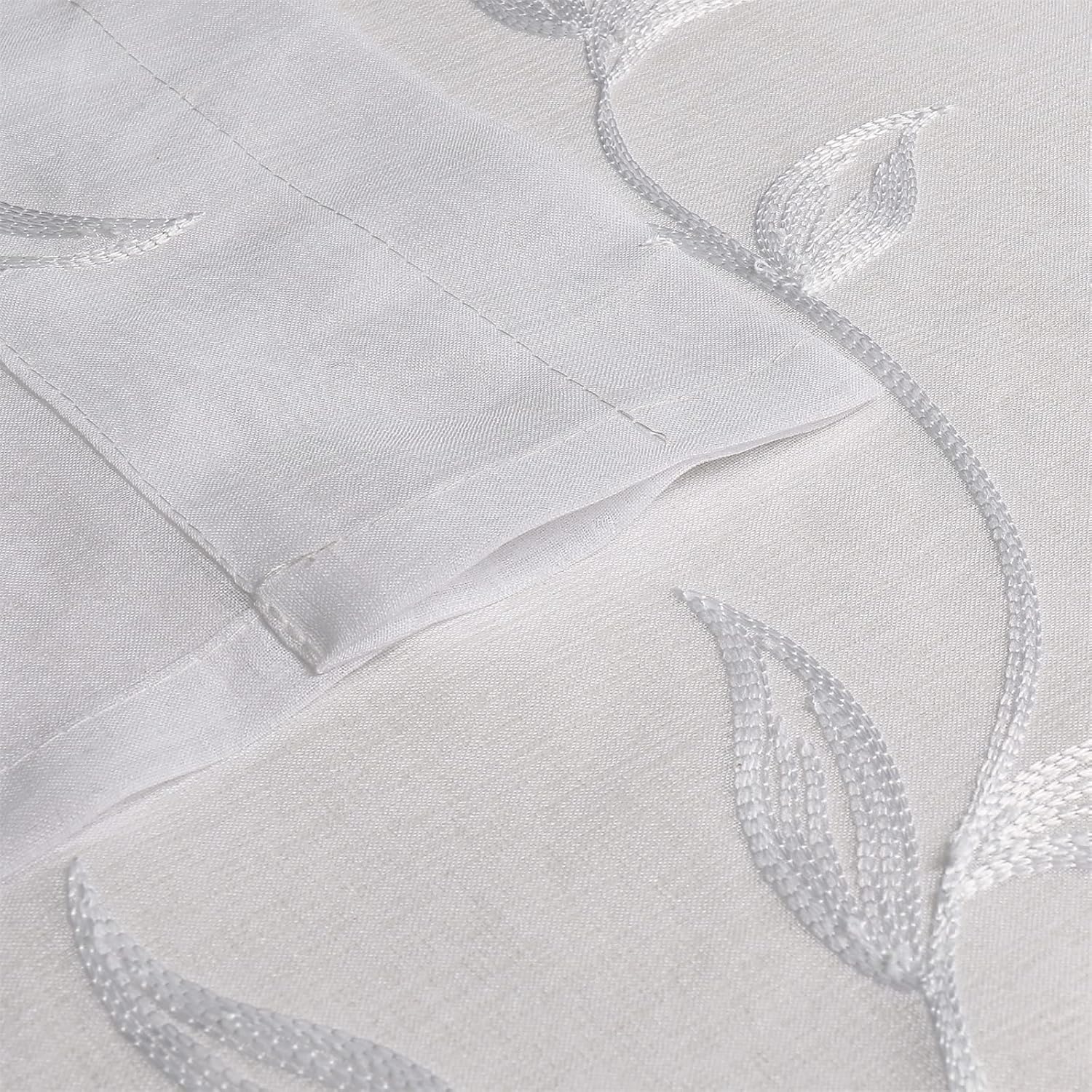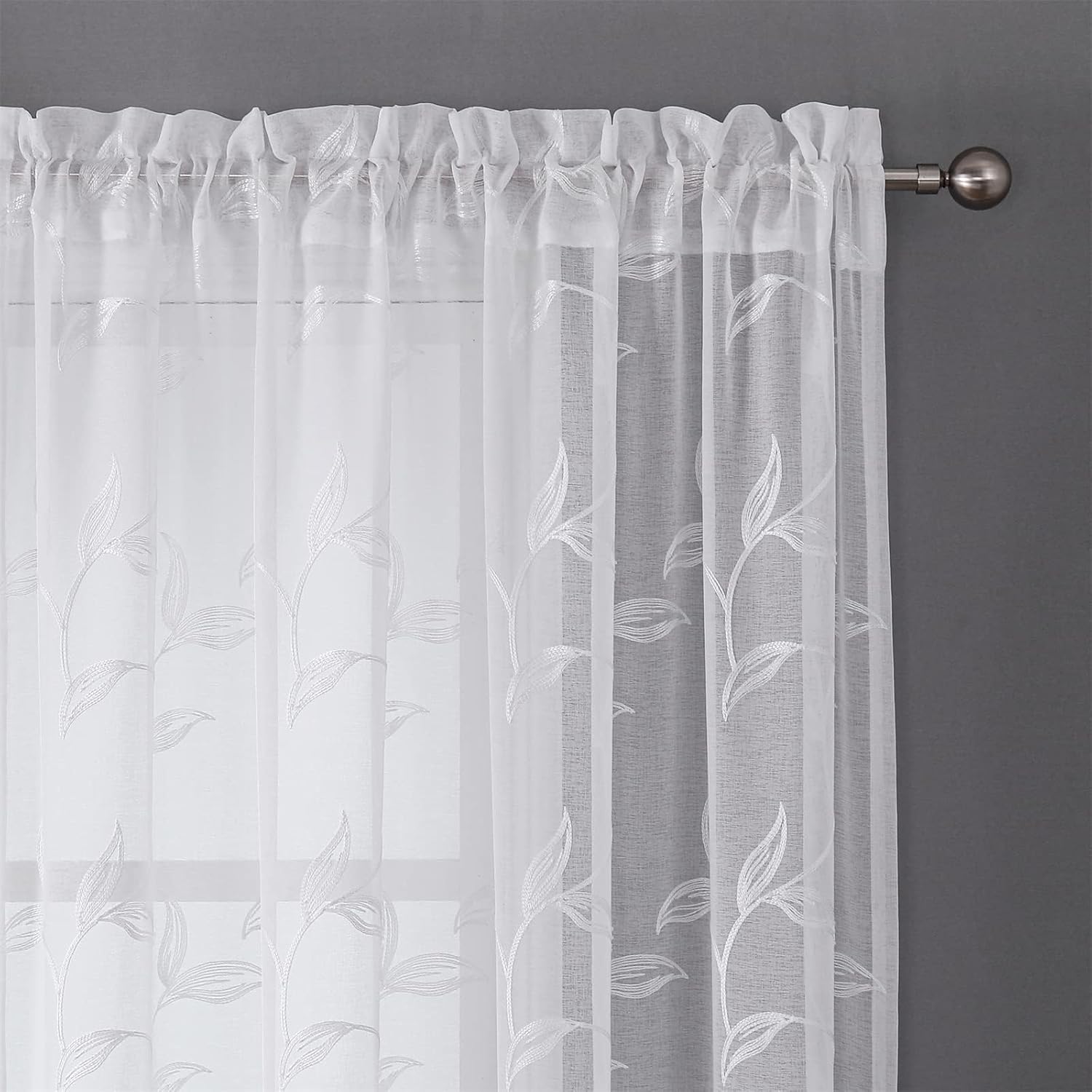 VISIONTEX Sheer Curtains 54 inch Length 2 Panels Set, White Voile Crushed Vine Leaves Embroidery, Rod Pocket Embroidered Window Drapes for Living Room and Bedroom, 54" x 54"