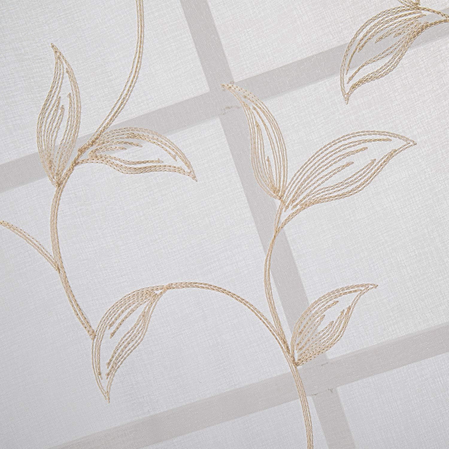 VISIONTEX Sheer Curtains 54 inch Length 2 Panels Set, White Voile Crushed Cream Vine Leaves Embroidery, Rod Pocket Embroidered Window Drapes for Living Room and Bedroom, 54" x 54"