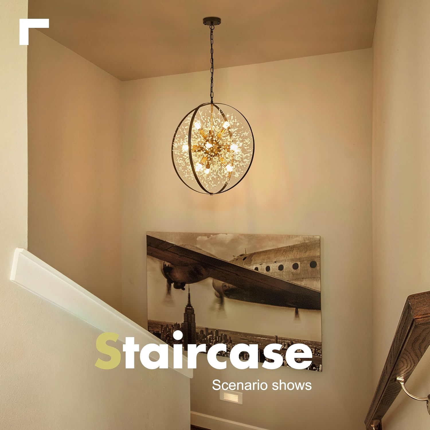 - 【Compatible with Various Bulbs】Sputnik Light Fixture features compatibility with dimmer,12 E12 bulbs base (Switches and Bulbs NOT Included). You can also install LED, Incandescent, or CFL bulbs. The Black and Gold Chandelier will create an enchanting light that illuminates your space with a cozy and warm atmosphere.