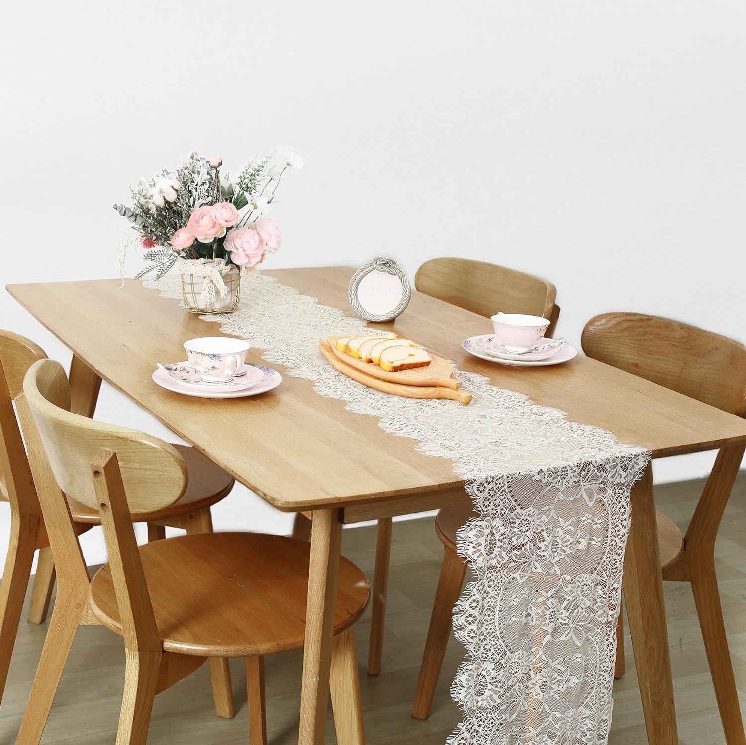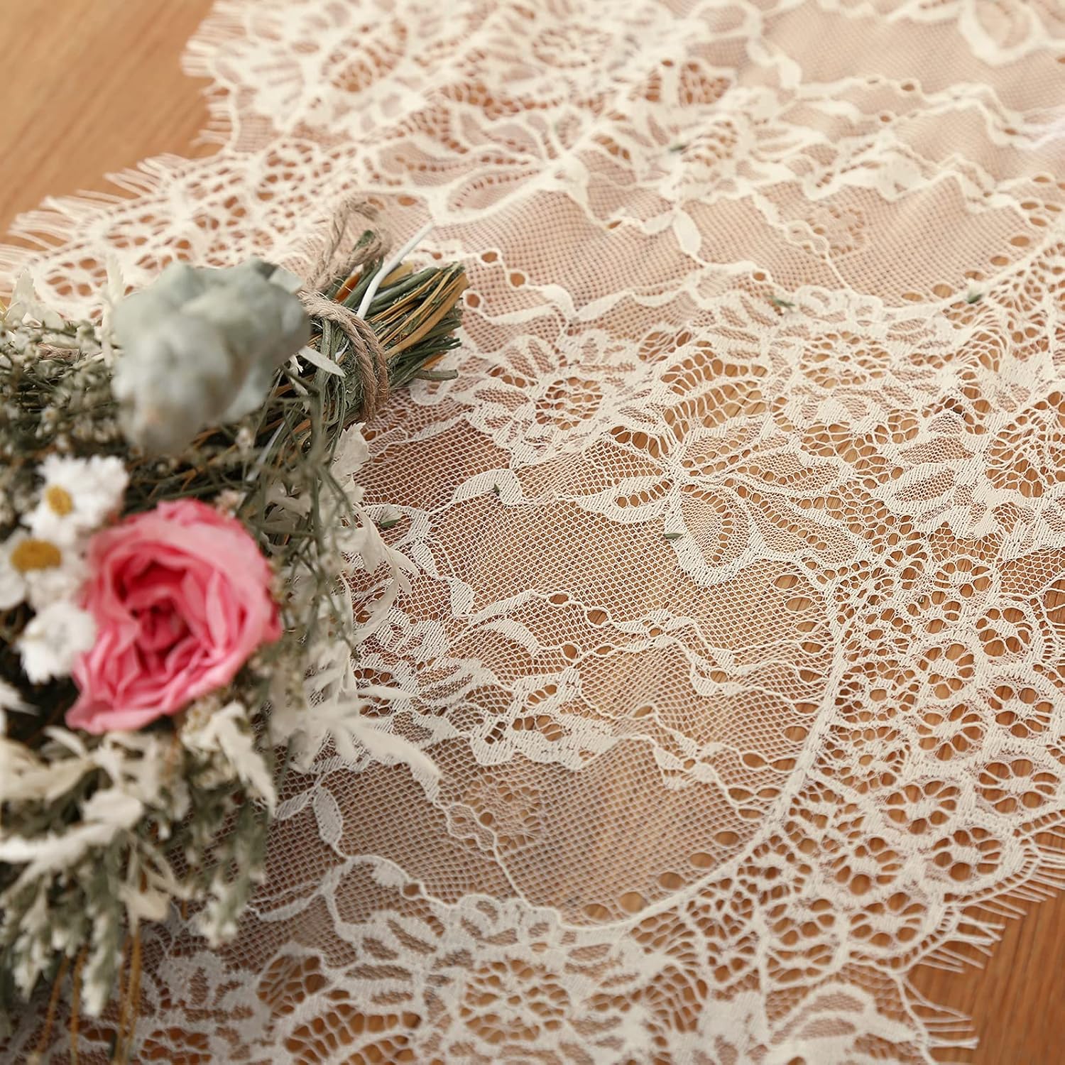 - π Widely Used: The embroidered white table runner perfect decor for boho wedding, country wedding, romantic candlelight dinner, baby shower, bridal shower and can also be used as a dresser scarf, coffee table runner or everyday use. You can also use it for DIY design, convert the lace table runner into gift bows, chair sashes, wedding tulle and decorations.