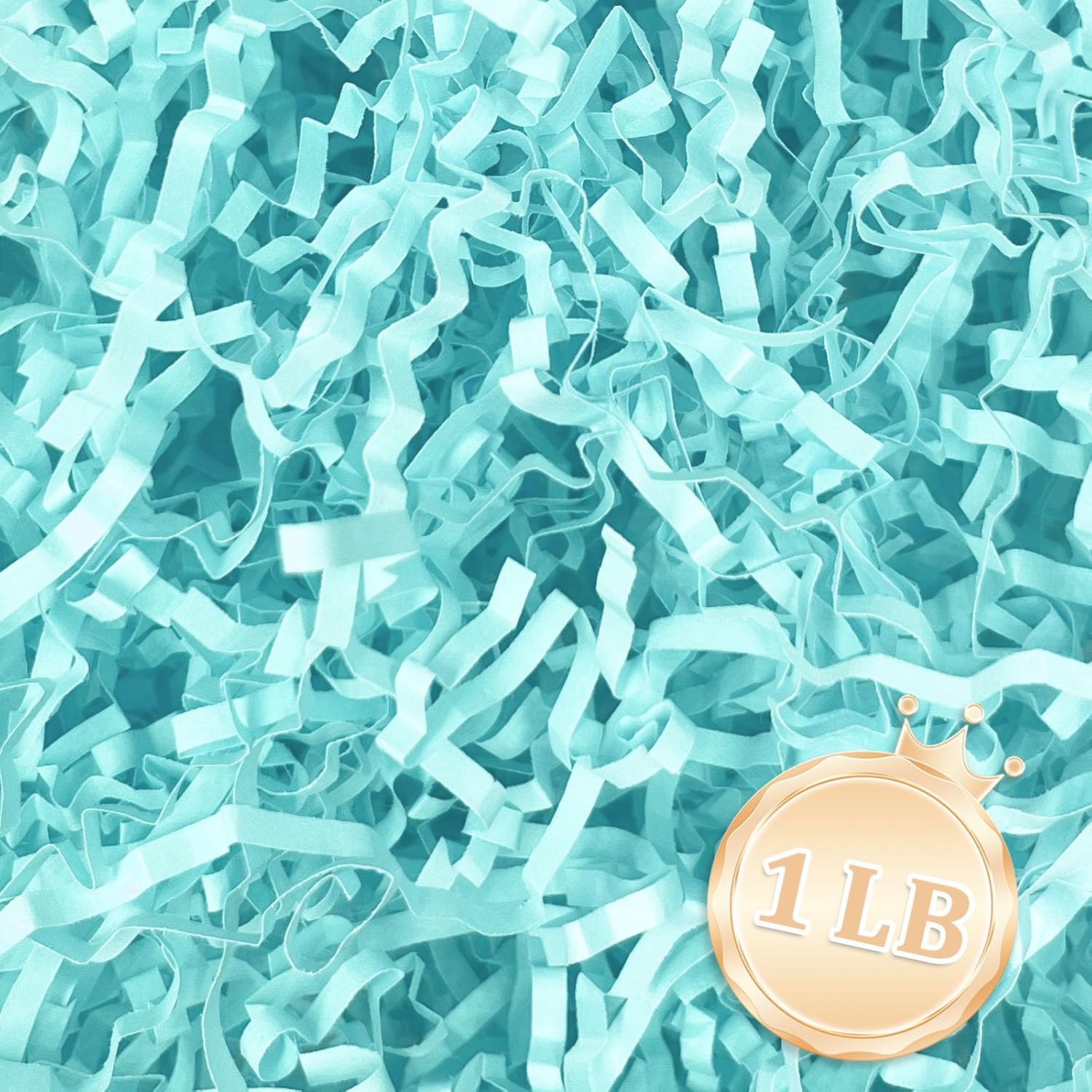 1 LB Light Blue Crinkle Cut Paper Shred Filler Great for Gift Wrapping, Light Blue Basket Fillers, Birthday, Gift Wrapping, Halloween Thanksgiving Christmas Easter Party Decor Filling Supplies