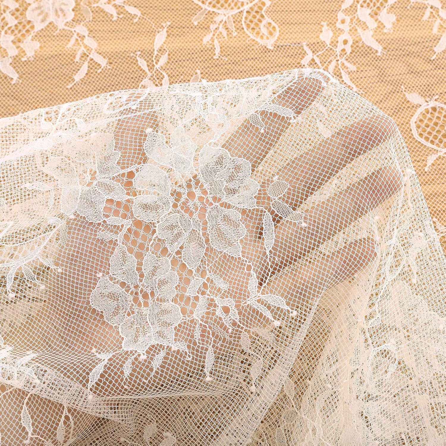LuoluoHouse Pack of 6 Lace Tablecloth Ivory Table Fabric 60x120 Inch for Rustic Boho Wedding Bridal Shower Party Decorations Rectangle Overlay Long Vintage Embroidered Reception Table Cloth Decor