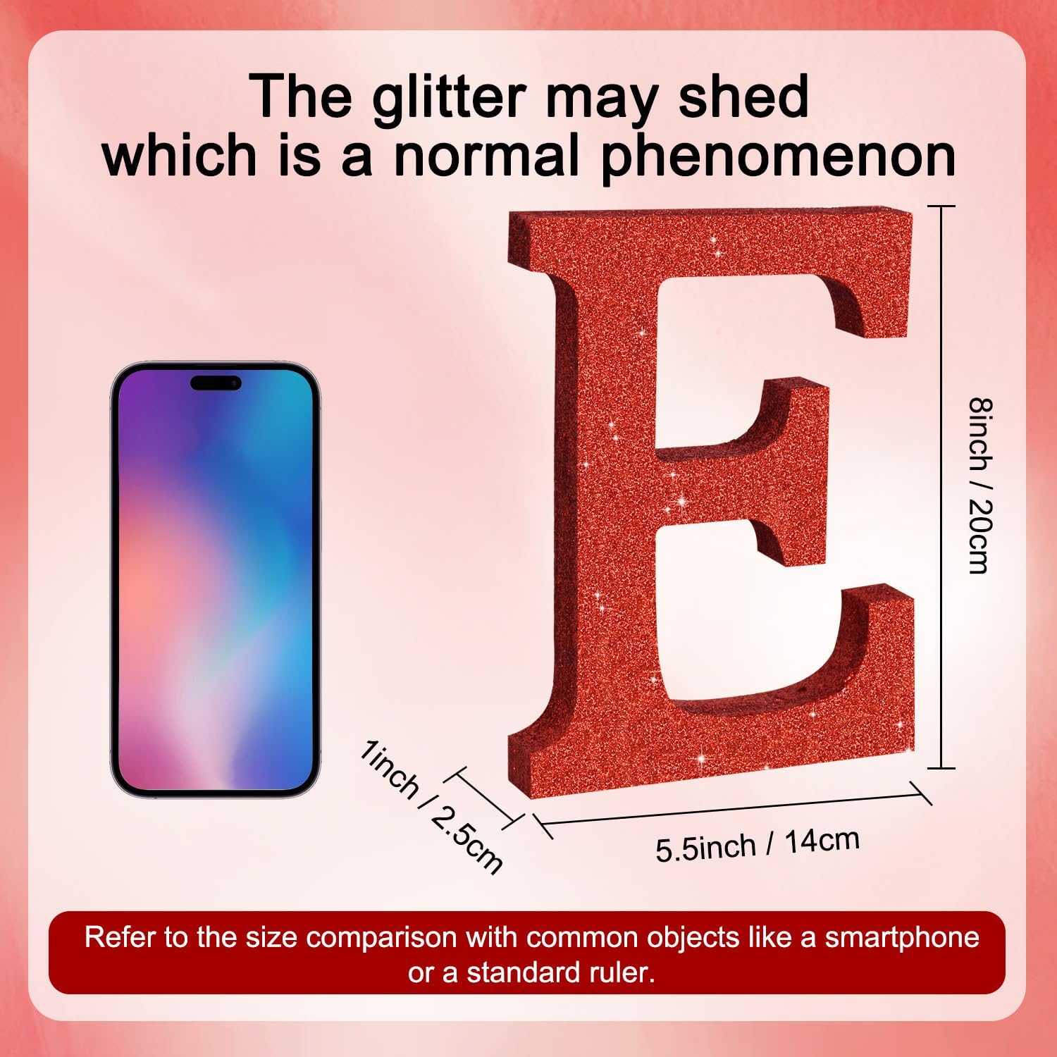 - ITEM INFORMATION AND SIZE: 1 Pcs * E Red Glitter Letter Ornament. Size: 8 * 5.8 * 1 Inches (20*15*2.5 CM). Before purchasing, Please check the size carefully to make sure it meets your needs