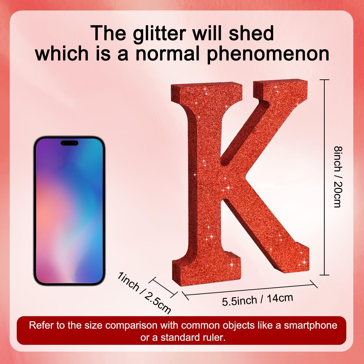 - ITEM INFORMATION AND SIZE: 1 Pcs * K Red Glitter Letter Ornament. Size: 8 * 5.8 * 1 Inches (20*15*2.5 CM). Before purchasing, Please check the size carefully to make sure it meets your needs