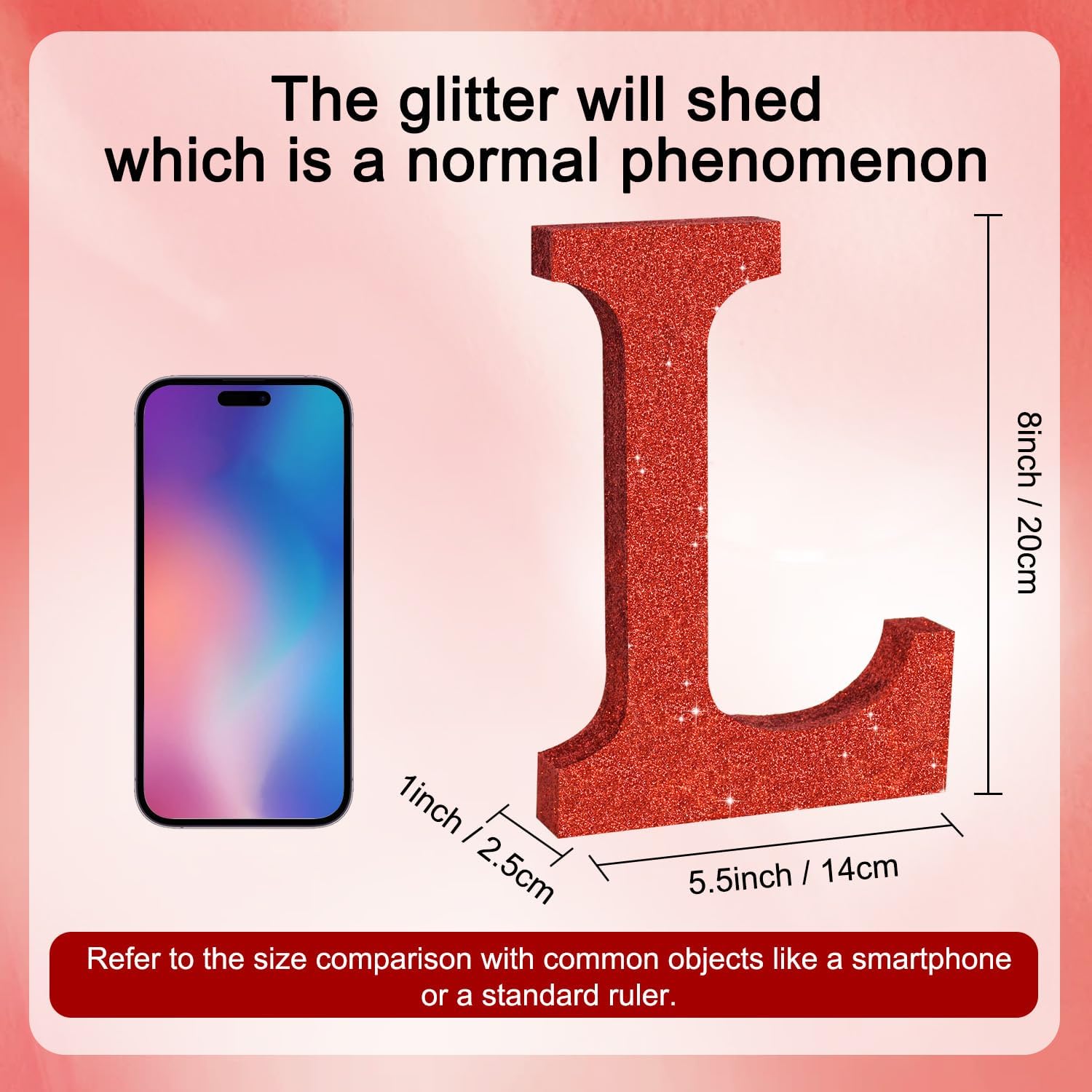 - ITEM INFORMATION AND SIZE: 1 Pcs * L Red Glitter Letter Ornament. Size: 8 * 5.8 * 1 Inches (20*15*2.5 CM). Before purchasing, Please check the size carefully to make sure it meets your needs