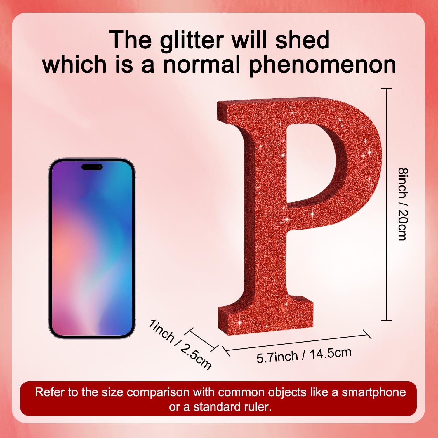- ITEM INFORMATION AND SIZE: 1 Pcs * P Red Glitter Letter Ornament. Size: 8 * 5.8 * 1 Inches (20*15*2.5 CM). Before purchasing, Please check the size carefully to make sure it meets your needs