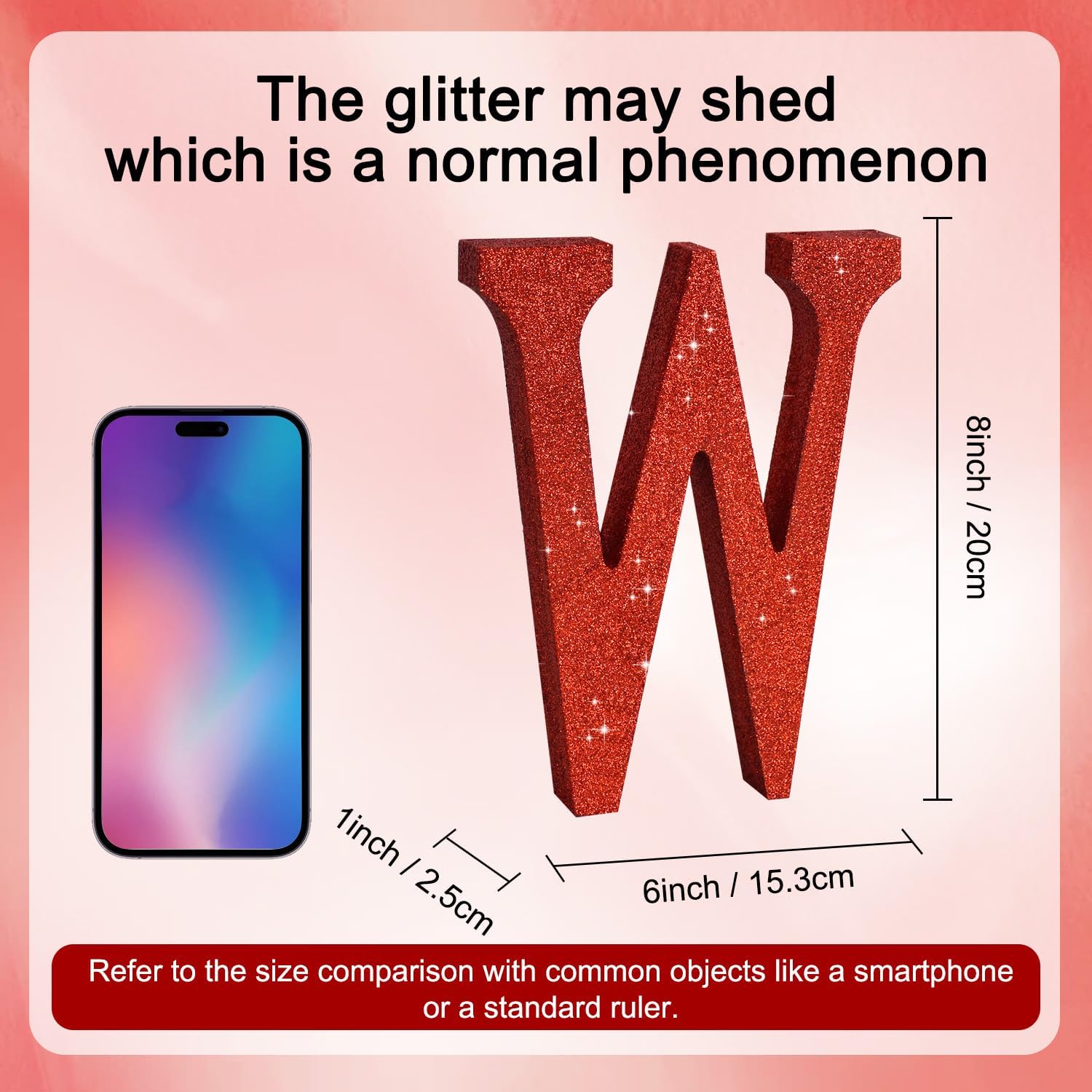 - ITEM INFORMATION AND SIZE: 1 Pcs * W Red Glitter Letter Ornament. Size: 8 * 5.8 * 1 Inches (20*15*2.5 CM). Before purchasing, Please check the size carefully to make sure it meets your needs