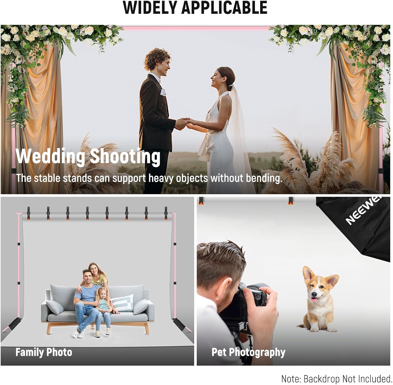 - Backdrop Support System: Comes with 2 backdrop stands, 4 crossbars, and other accessories to ensure stable support for your backdrop (Backdrops Not Included). Ideal for photo studios, parties, weddings, and other events