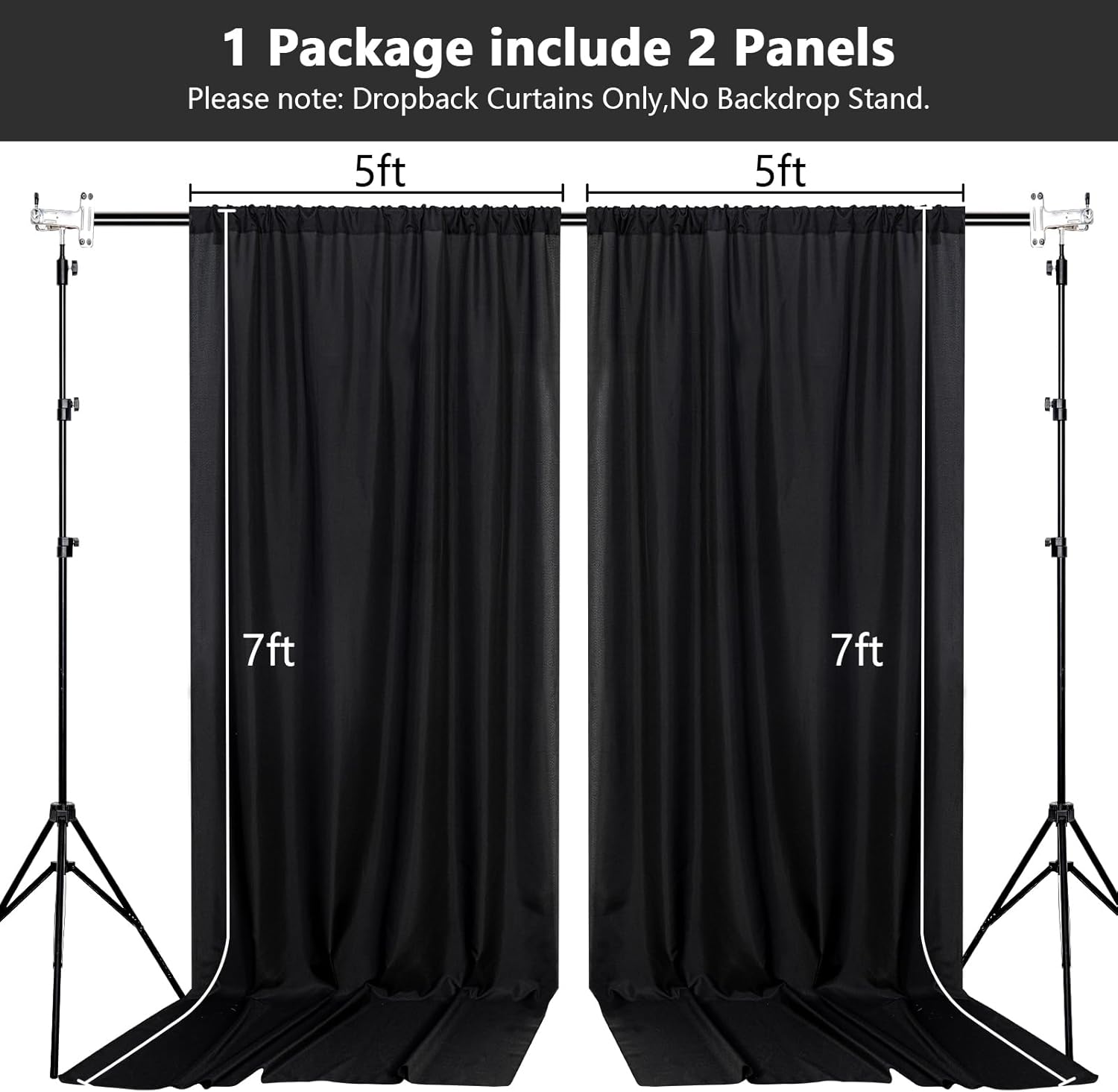 - DIMENSIONS: Each order is for 2 (two) polyester curtains. Each curtain measures 5 feet wide x 7 feet high. Entire backdrop measures 10 feet wide x 7 feet high.Each curtain panel comes with 4 inch rod pocket on top, fit up to any standard rods. (Please note: Dropback Curtains Only,No Backdrop Stand.)