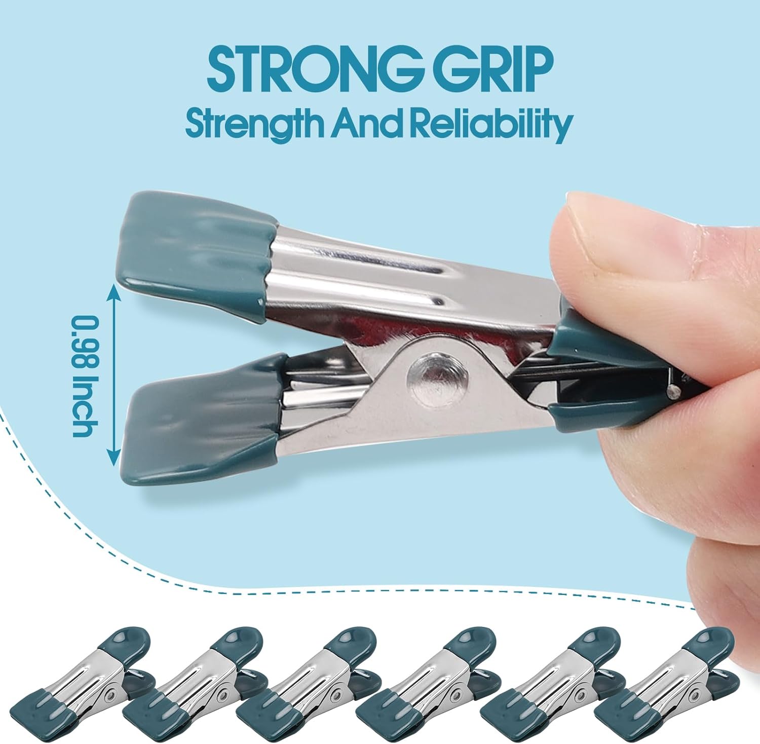 - Strong Grip: These metal bag clips have exceptional grip strength, with a 0.98-inch opening that makes the clothespin sufficiently large and robust enough to hold heavy items such as sweaters and jeans. Even on windy days, clothes will not slip or be blown away