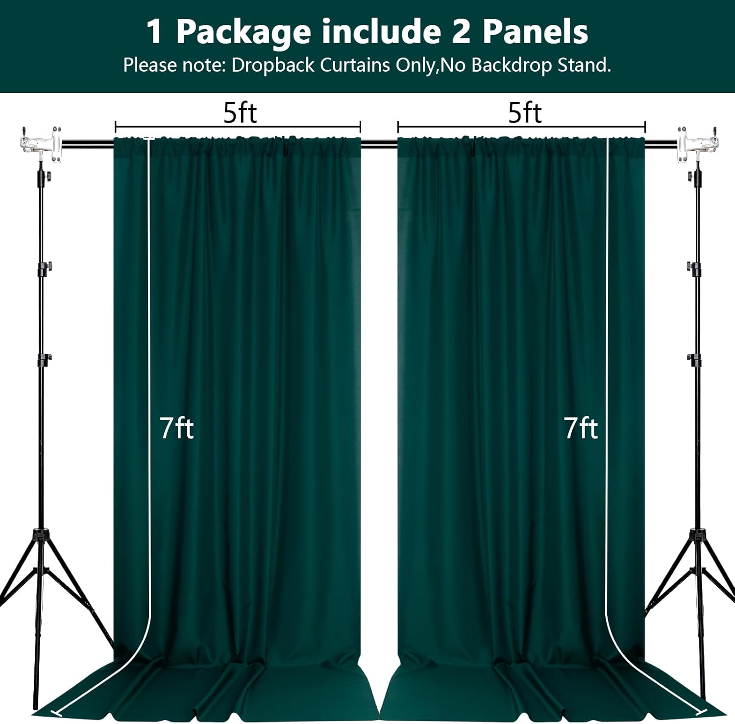 - DIMENSIONS: Each order is for 2 (two) polyester curtains. Each curtain measures 5 feet wide x 7 feet high. Entire backdrop measures 10 feet wide x 7 feet high.Each curtain panel comes with 4 inch rod pocket on top, fit up to any standard rods. (Please note: Dropback Curtains Only,No Backdrop Stand.)