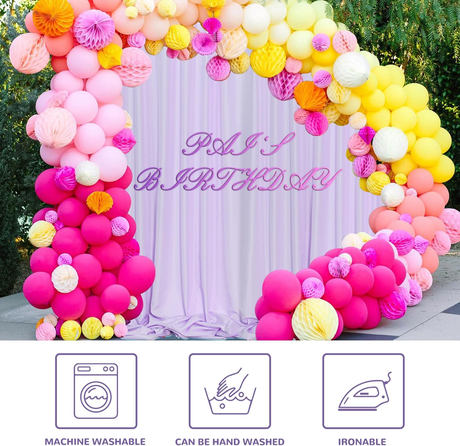 - MATERIAL:The backdrop curtains are made by High Quality Polyester. Polyester fabric is stain resistance; The background curtain can be cleaned with various cleanser while maintaining an elegant appearance.