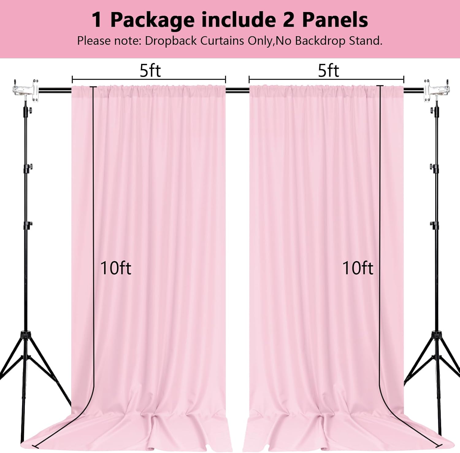- DIMENSIONS: Each order is for 2 (two) polyester curtains. Each curtain measures 5 feet wide x 10 feet high. Entire backdrop measures 10 feet wide x 10 feet high.Each curtain panel comes with 4 inch rod pocket on top, fit up to any standard rods. (Please note: Dropback Curtains Only,No Backdrop Stand.)